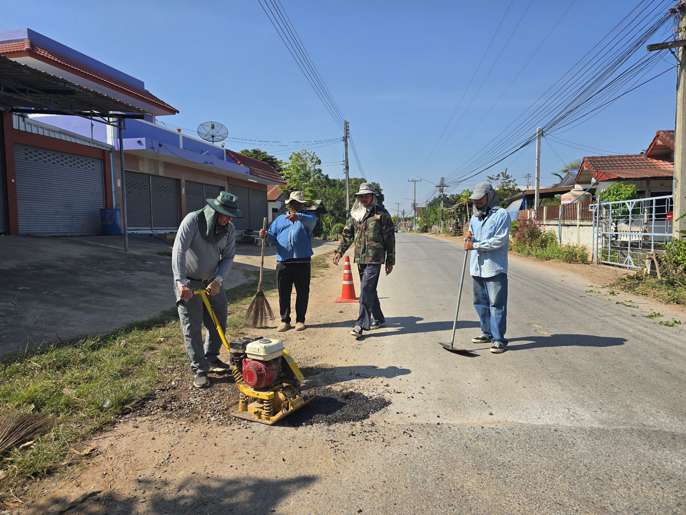 นำยางมะตอยสำเร็จรูป ซ่อมแซมถนนสายกลางบ้านหนองประดู...