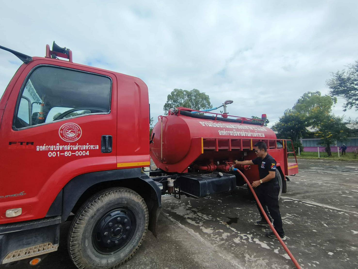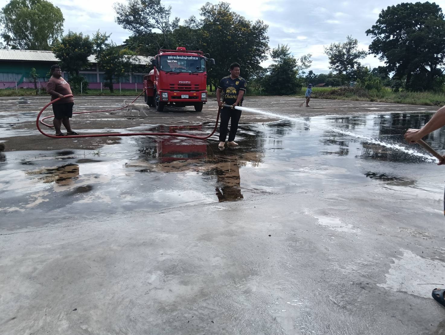 นำรถบรรทุกน้ำฯ อบต.หัวทะเล ออกเพื่อล้างทำความสะอาดลานเอนกประสงค์โรงเรียนบ้านกุ่ม เพื่อเตรียมสถานที่สำหรับตากพืชผลทางการเกษตร