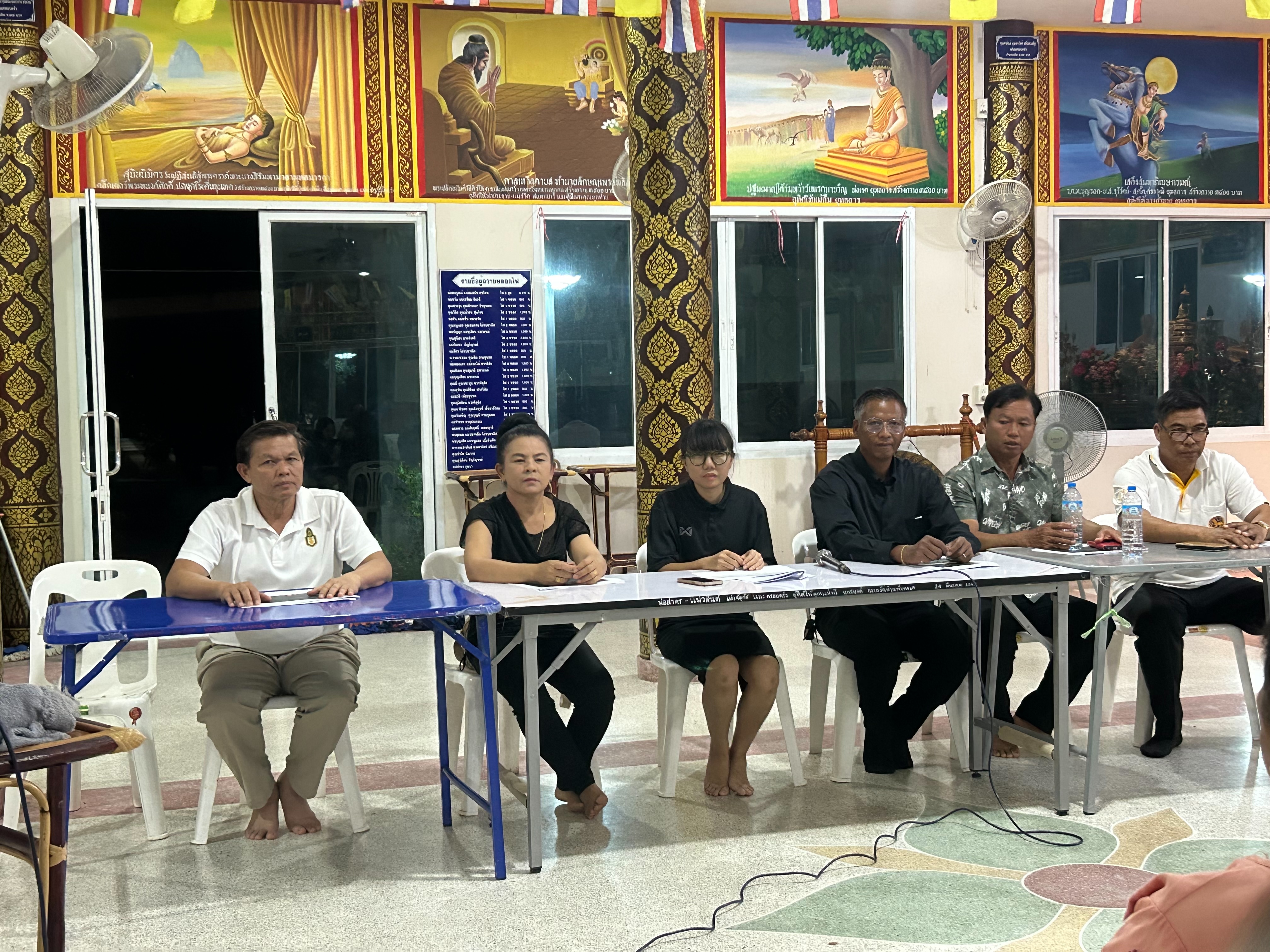 ประชุม การประชาคมการรับฟังความคิดเห็น การซ่อมแซมฝายน้ำล้น ม.1