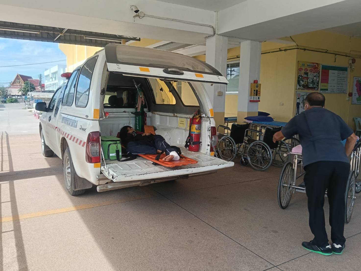 นำรถกู้ชีพ อบต.หัวทะเล ออกเพื่อไปรับ-ส่งผู้ได้รับบาดเจ็บ ทำการปฐมพยาบาลเบื้องต้น ก่อนนำส่งห้องฉุกเฉินโรงพยาบาลบำเหน็จณรงค์