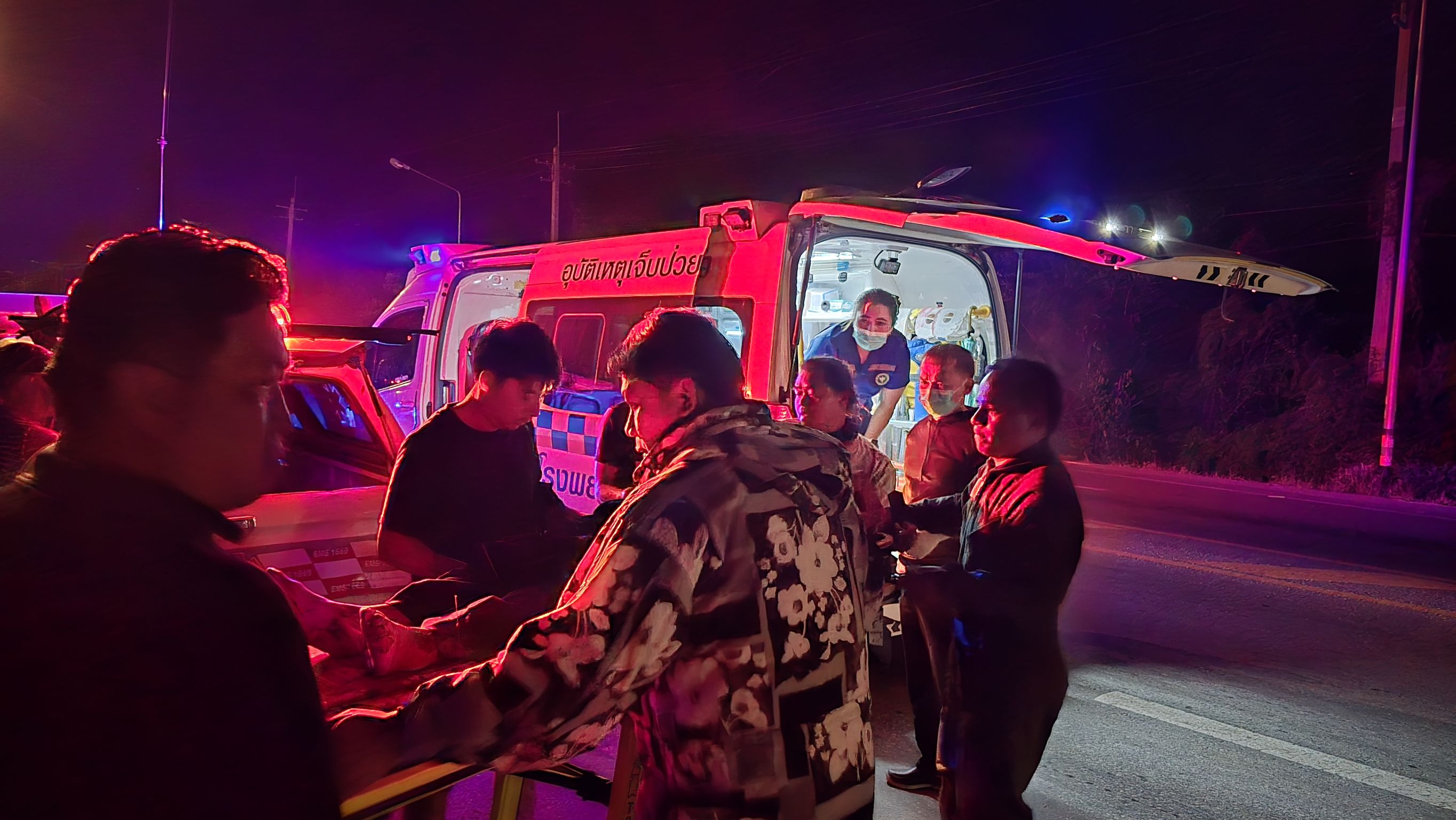 บริเวณจุดเกิดเหตุ พบผู้บาดเจ็บเป็นชาย 1 ราย คนบ้านหัวทะเล มีแผลที่ศรีษะ ระหว่างปฐมพยาบาลยังมีสติ ตอบโต้ได้