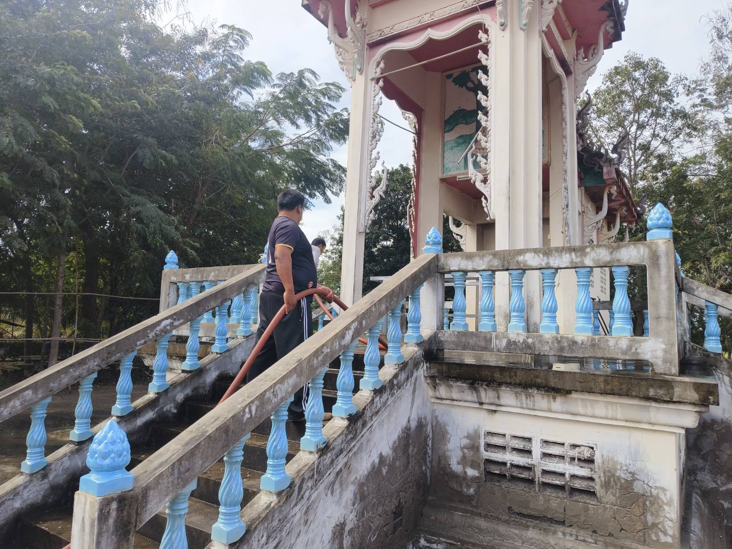 นำรถบรรทุกน้ำฯ อบต.หัวทะเลออกเพื่อทำความสะอาดเมรุวัดหัวสะพาน ม.10