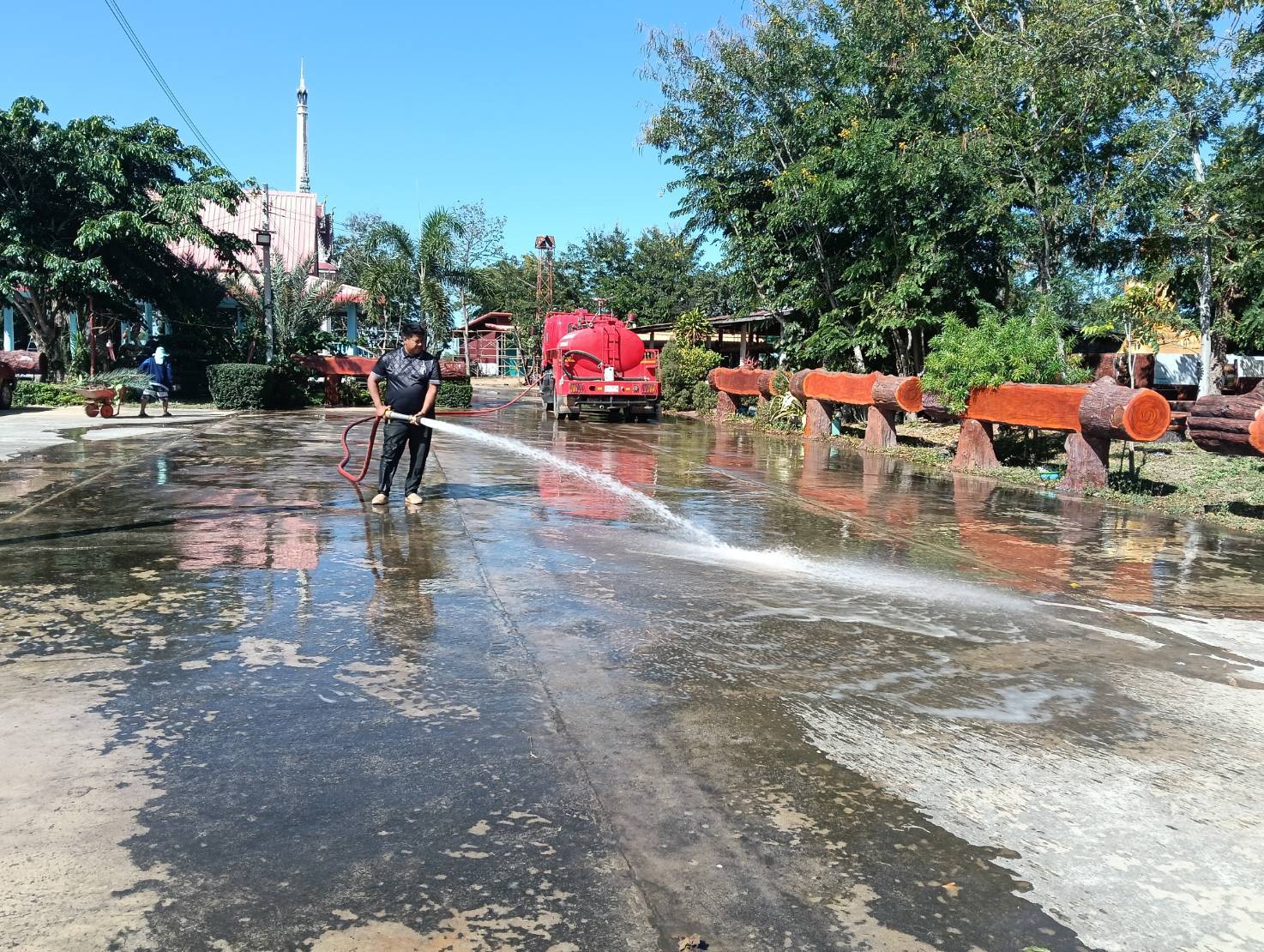 นำรถบรรทุกน้ำฯ อบต.หัวทะเลออกเพื่อทำความสะอาดศาลาธรรมสังเวชและลานเอนกประสงค์วัดหัวสะพาน ม.10