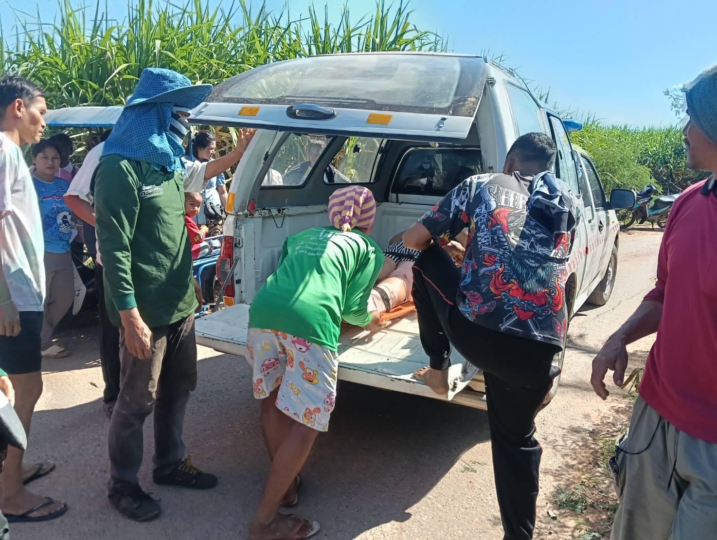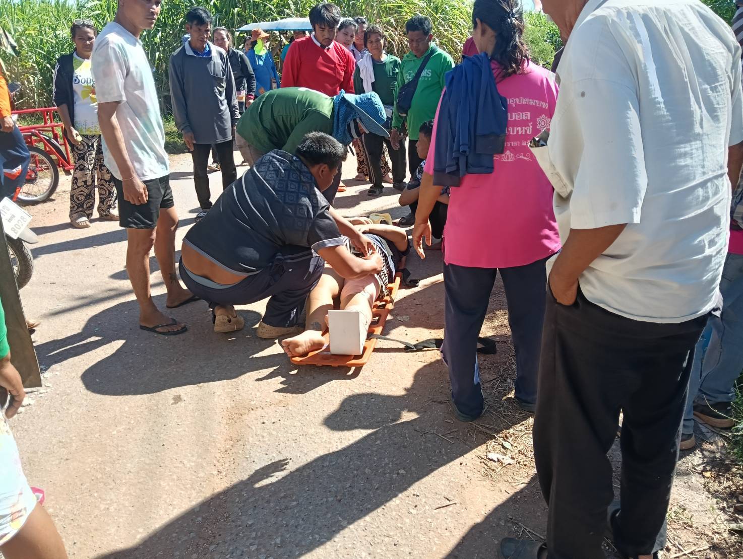 รับแจ้งมีอุบัติเหตุรถจักรยานยนต์ชนรถอีแต๋น บนถนนบ้านหนองดง ม.7-บ้านเก่า ม.8 บริเวณก่อนถึงหมู่บ้านหนองดง