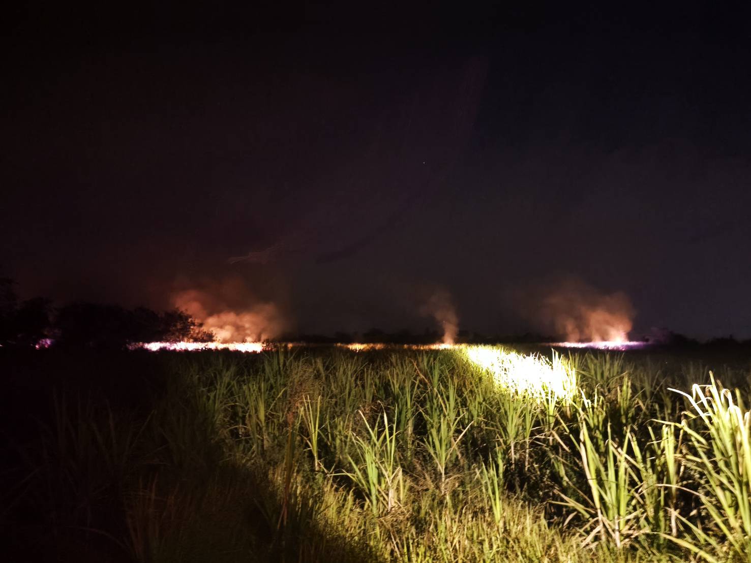 รับแจ้งเกิดเหตุไฟไหม้ป่าอ้อย บริเวณ หลังโซล่าเซลล์พลังงานแสงอาทิตย์บ้านเขาดิน