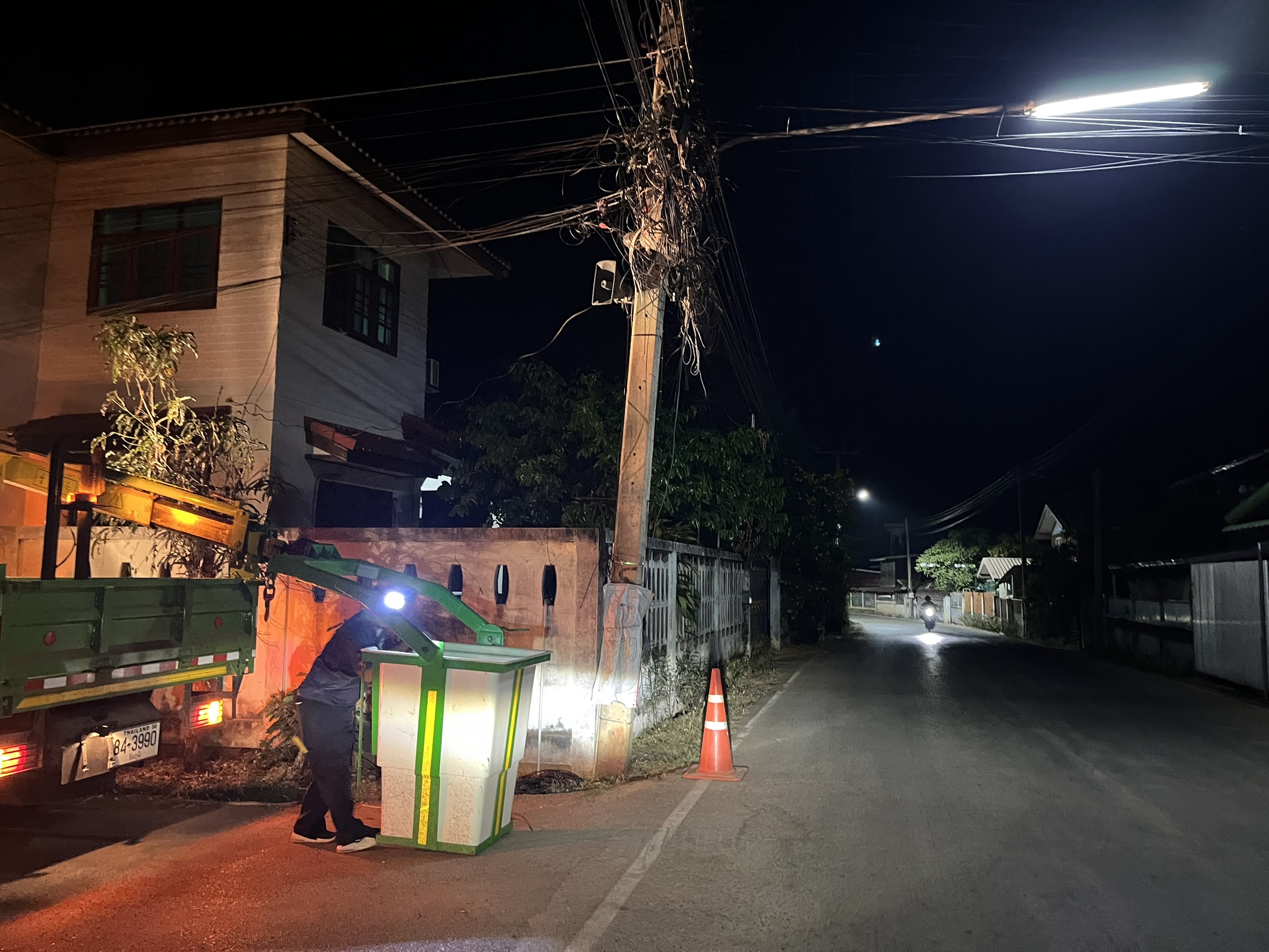 รับเเจ้งเหตุ สายไฟฟ้าส่องสว่างสาธารณะขาด สาเหตุเกิดจากรถขนอ้อย