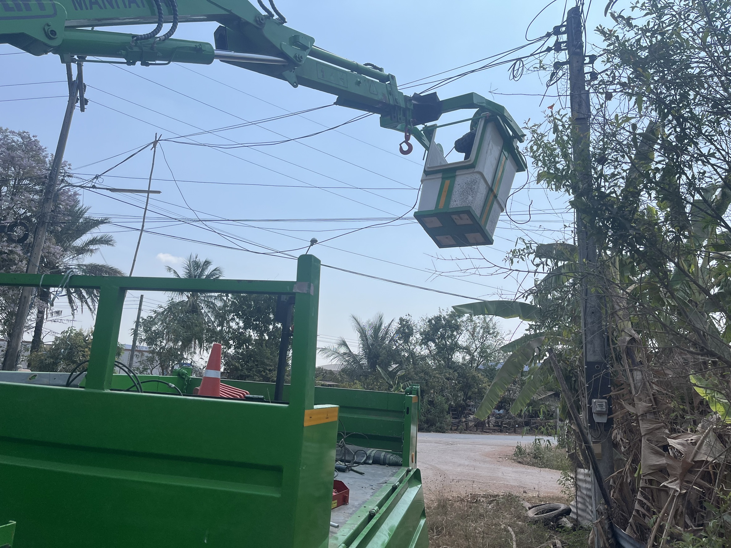 รับเเจ้งเหตุ สายไฟฟ้าส่องสว่างสาธารณะขาด สาเหตุเกิดจากรถขนอ้อย