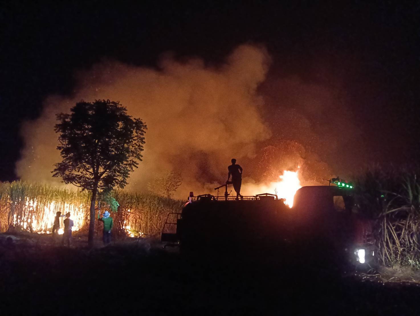 รับแจ้งเกิดเหตุไฟไหม้ป่าอ้อยบริเวณระหว่างเส้นทางรอยต่อบ้านหัวสระใหม่ หมู่ 12 ไปโคกแสว หมู่.6