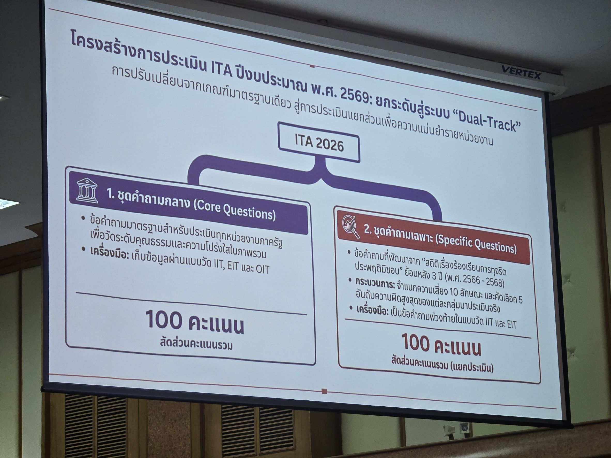 เข้าร่วมอบรมโครงการขับเคลื่อนเพื่อพัฒนาและยกระดับคะแนนการประเมินคุณธรรมและความโปร่งใส ในการดำเนินงานของหน่วยงานภาครัฐ (ITA) ประจำปีงบประมาณ 2569