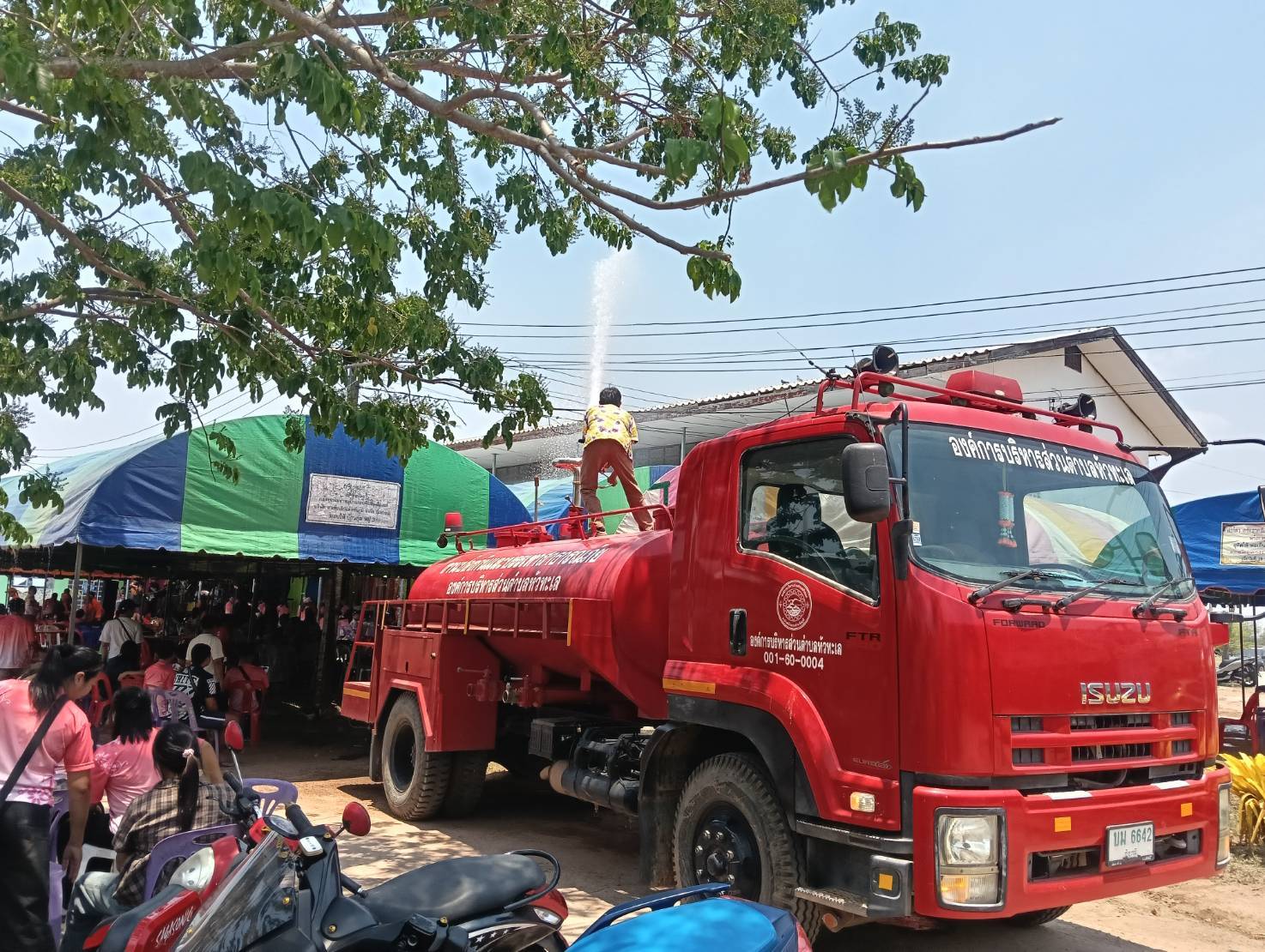นำรถบรรทุกน้ำฯ อบต.หัวทะเล ออกฉีดพ่นละอองน้ำเพื่อลดความร้อนในงานทอดผ้าป่าสามัคคีเพื่อการศึกษาโรงเรียนหัวสระวิทยา