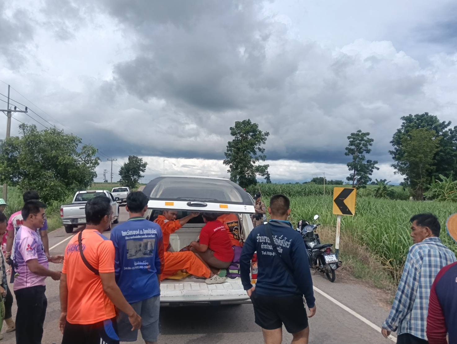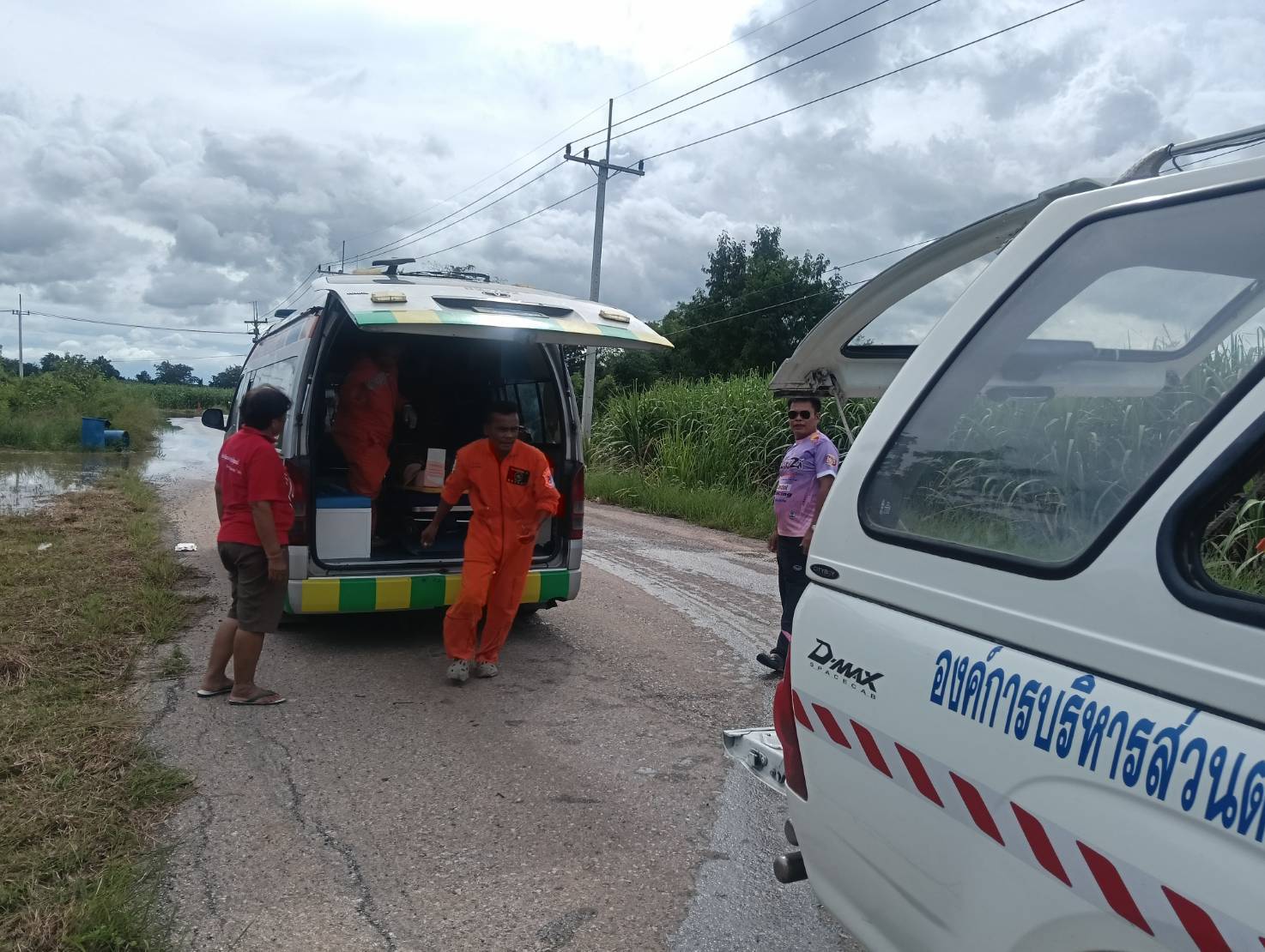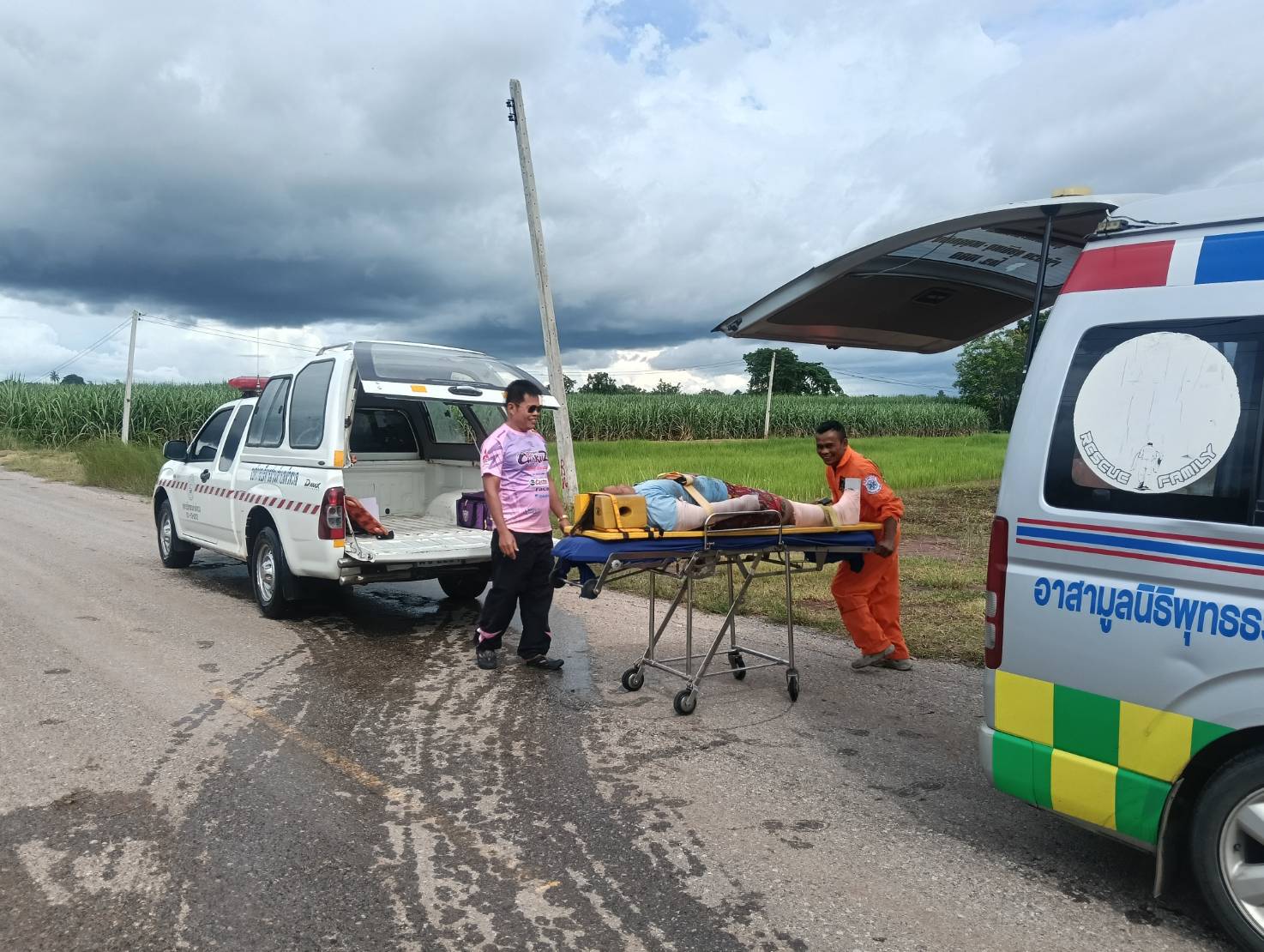 นำรถกู้ชีพ อบต.หัวทะเล ออกรับผู้ได้รับบาดเจ็บ ตรวจสอบเหตุพบผู้บาดเจ็บเป็นหญิง1 ราย ทำการปฐมพยาบาลเบื้องต้นก่อนเปลี่ยนถ่ายรถกู้ชีพ ฮุก 31 นำส่ง รพ.บำเหน็จณรงค์ ต่อไป