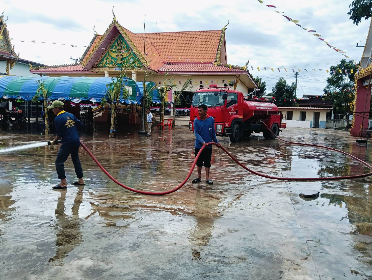นำรถบรรทุกน้ำฯ อบต.หัวทะเล ออกเพื่อทำความสะอาดโบถส์วัดหนองประดู่ และลานเอนกประสงค์วัดสุนทรสราวาส(บ้านหัวสระ)เพื่อเตรียมสถานที่จัดงานบุญกฐินประจำปี 2568