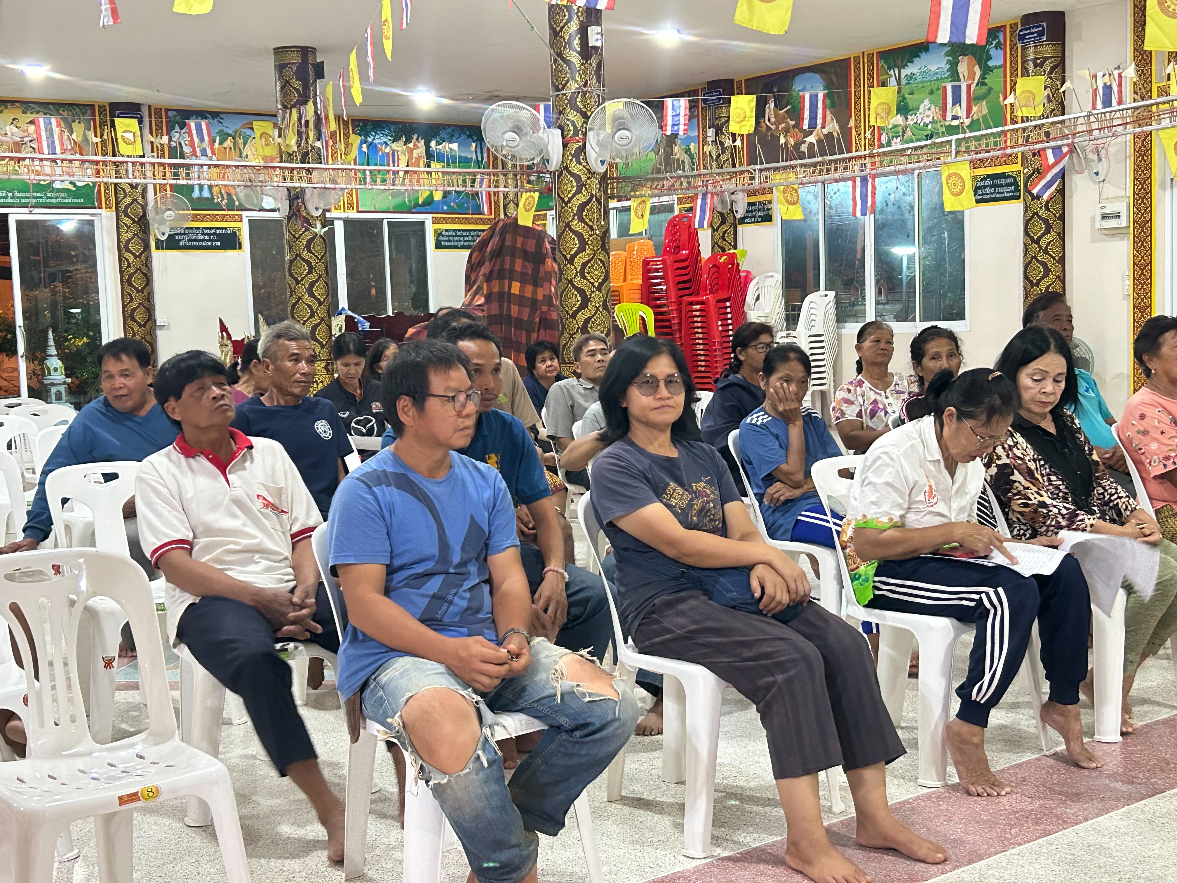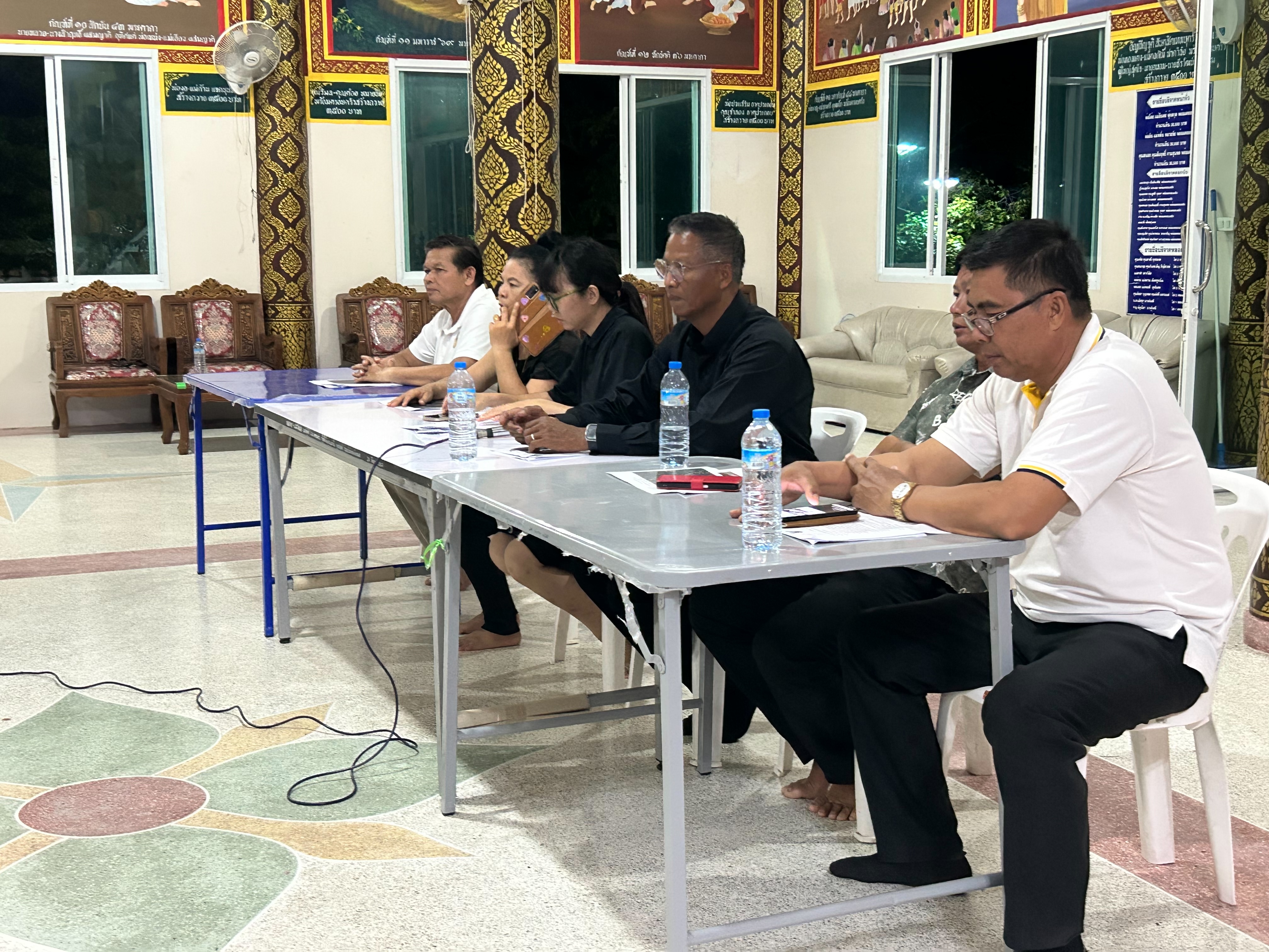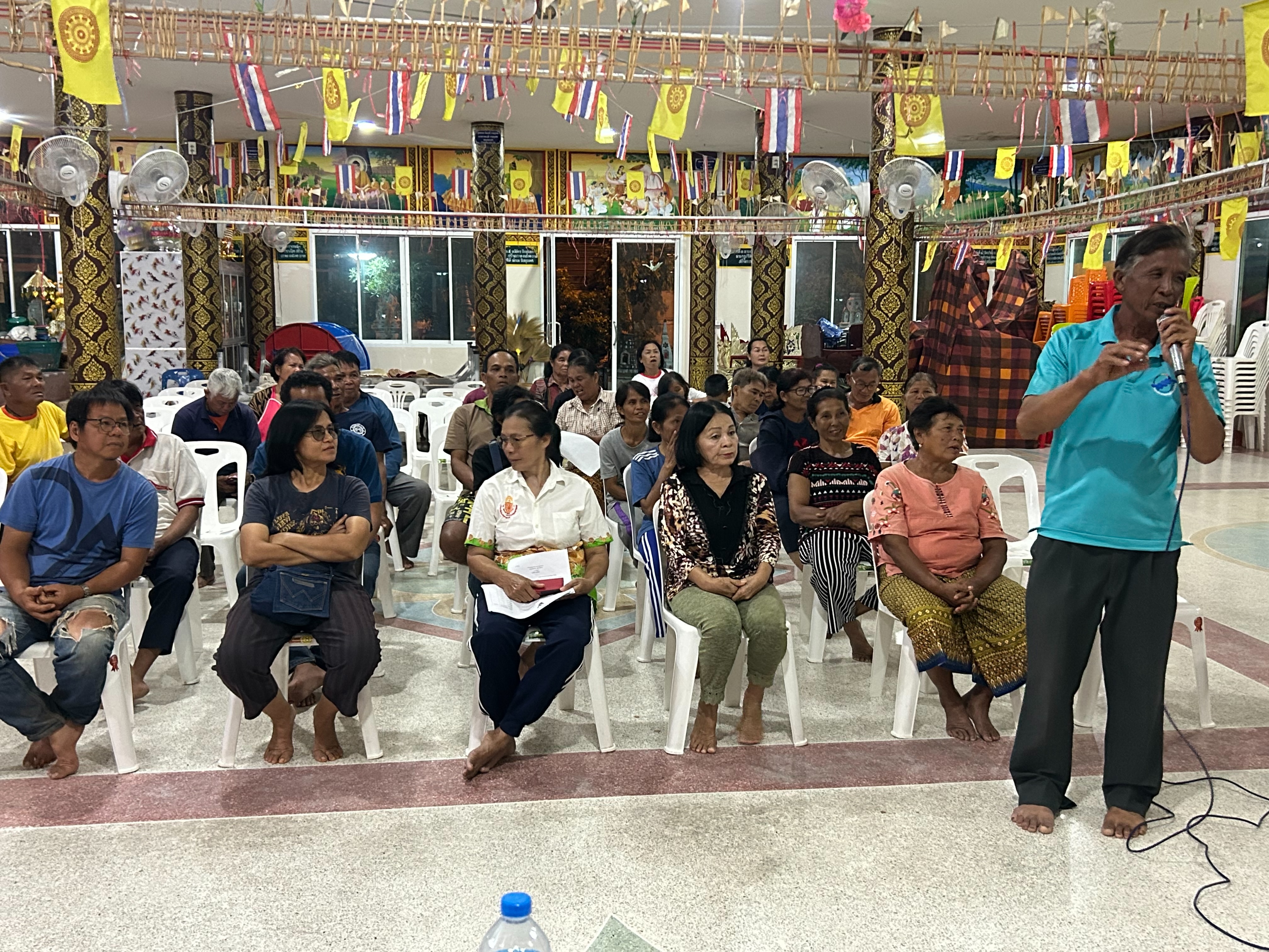 ประชุม การประชาคมการรับฟังความคิดเห็น การซ่อมแซมฝายน้ำล้น ม.1