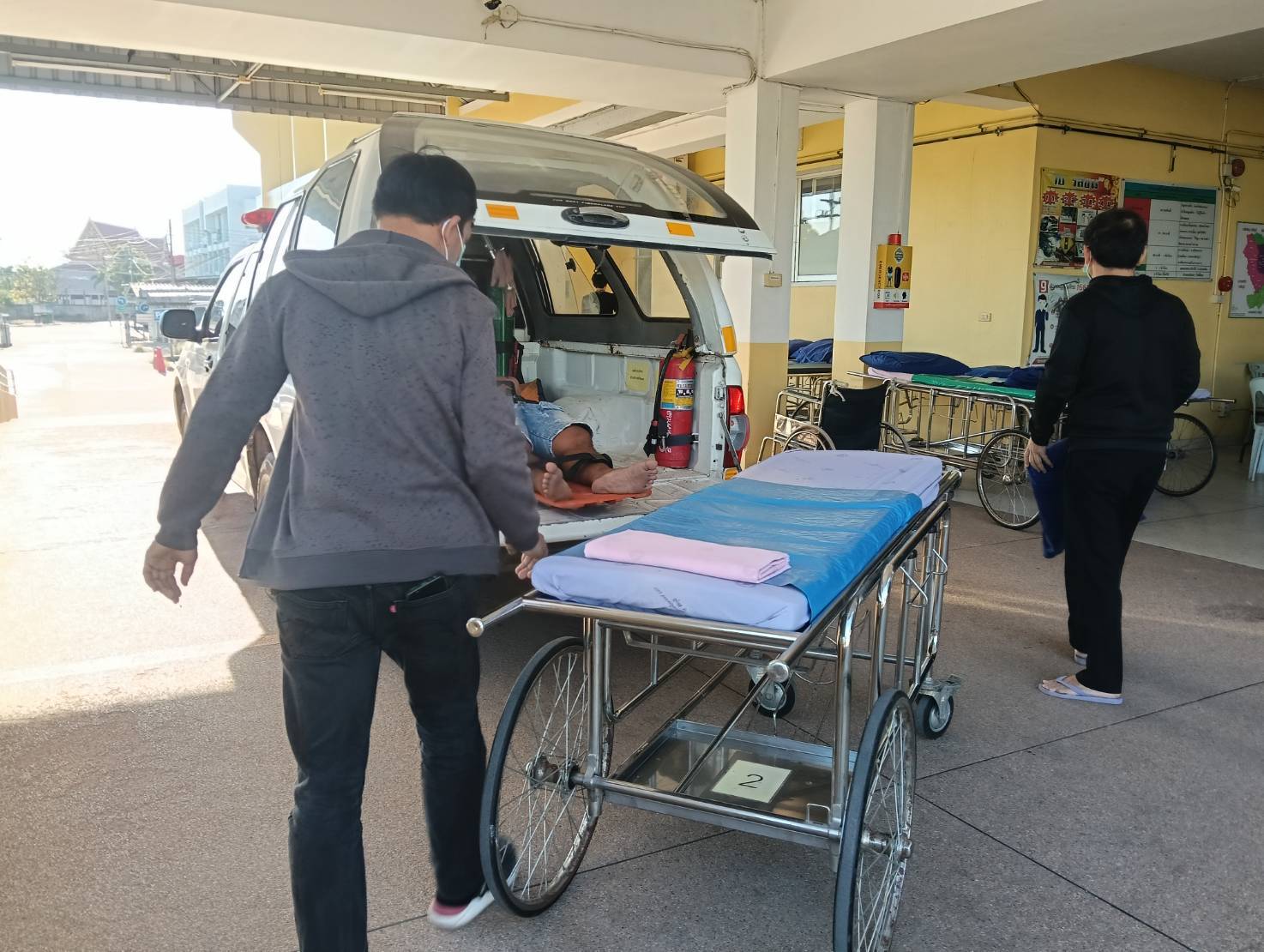 นำรถกู้ชีพ อบต.หัวทะเล ออกตรวจสอบ พบผู้ได้รับบาดเจ็บเป็นชาย 1 ราย ทำการปฐมพยาบาลเบื้องต้นก่อนนำส่งห้องฉุกเฉินโรงพยาบาลบำเหน็จณรงค์