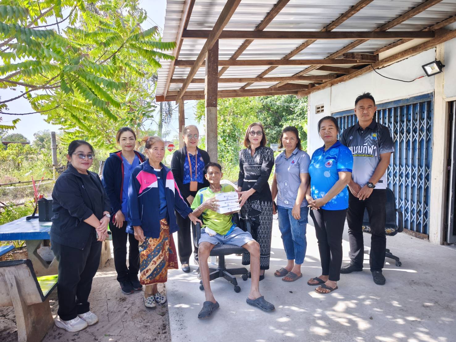 2.นางทองคำ ฟากหนองดู่ อายุ 62 ปี ผู้สูงอายุพิการเดินไม่ได้ มอบรถเข็นแบบเปิดข้าง วางแผนการดูแลร่วมกับ CG/CC บ้านโคกแสว ม.6
