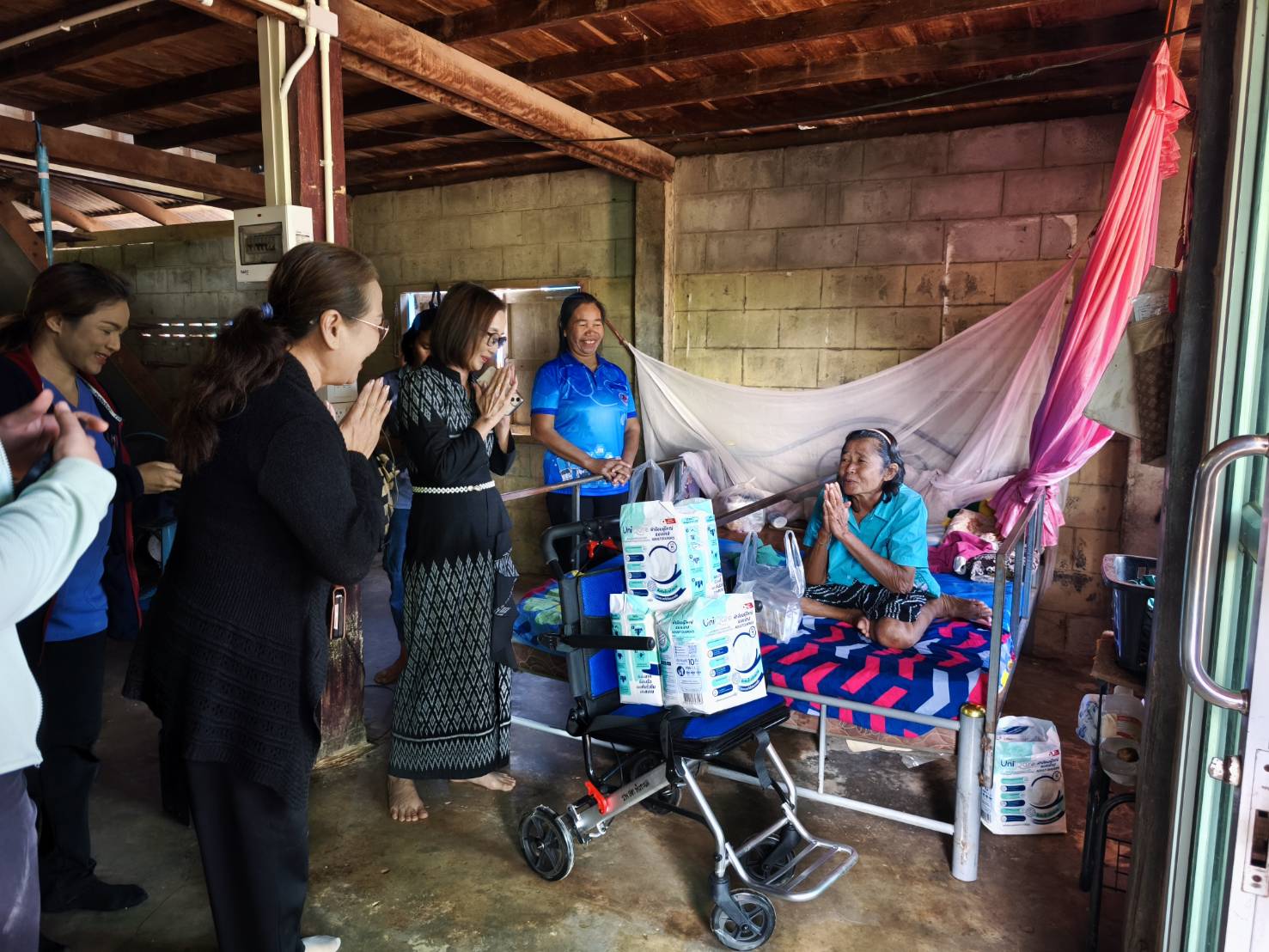 3.นายสนิท แฟสันเทียะ อายุ 59 ปี ผู้สูงอายุติดเตียงช่วยเหลือตัวเองได้น้อย มอบรถเข็น มอบเตียงไขหัวสูง