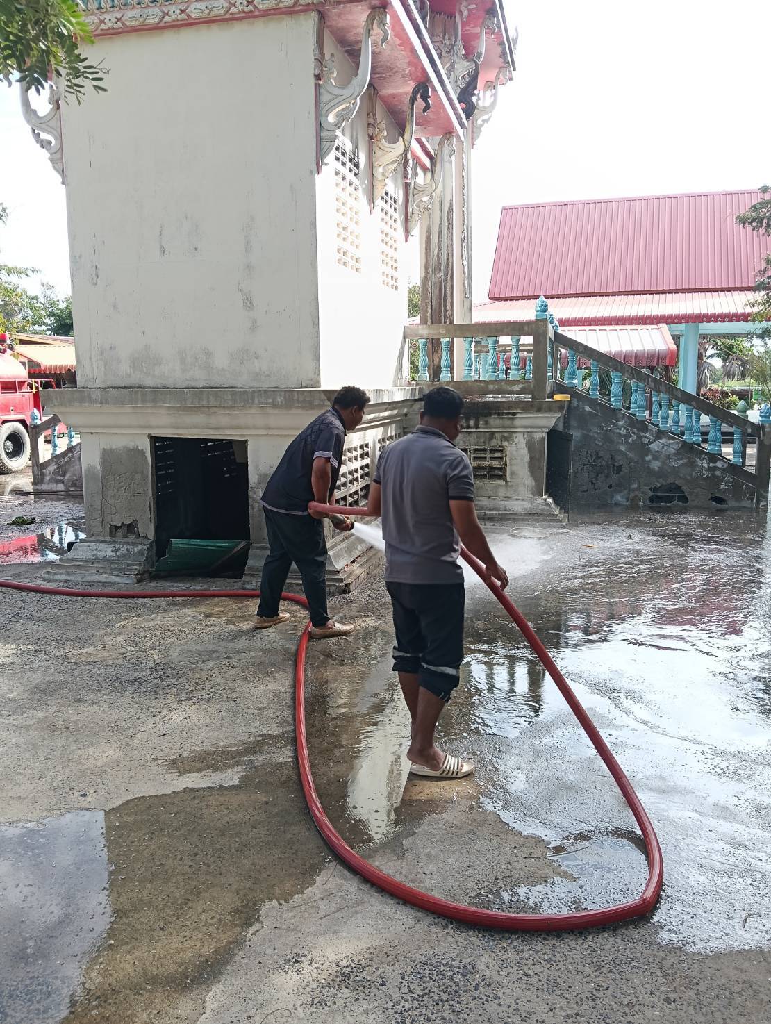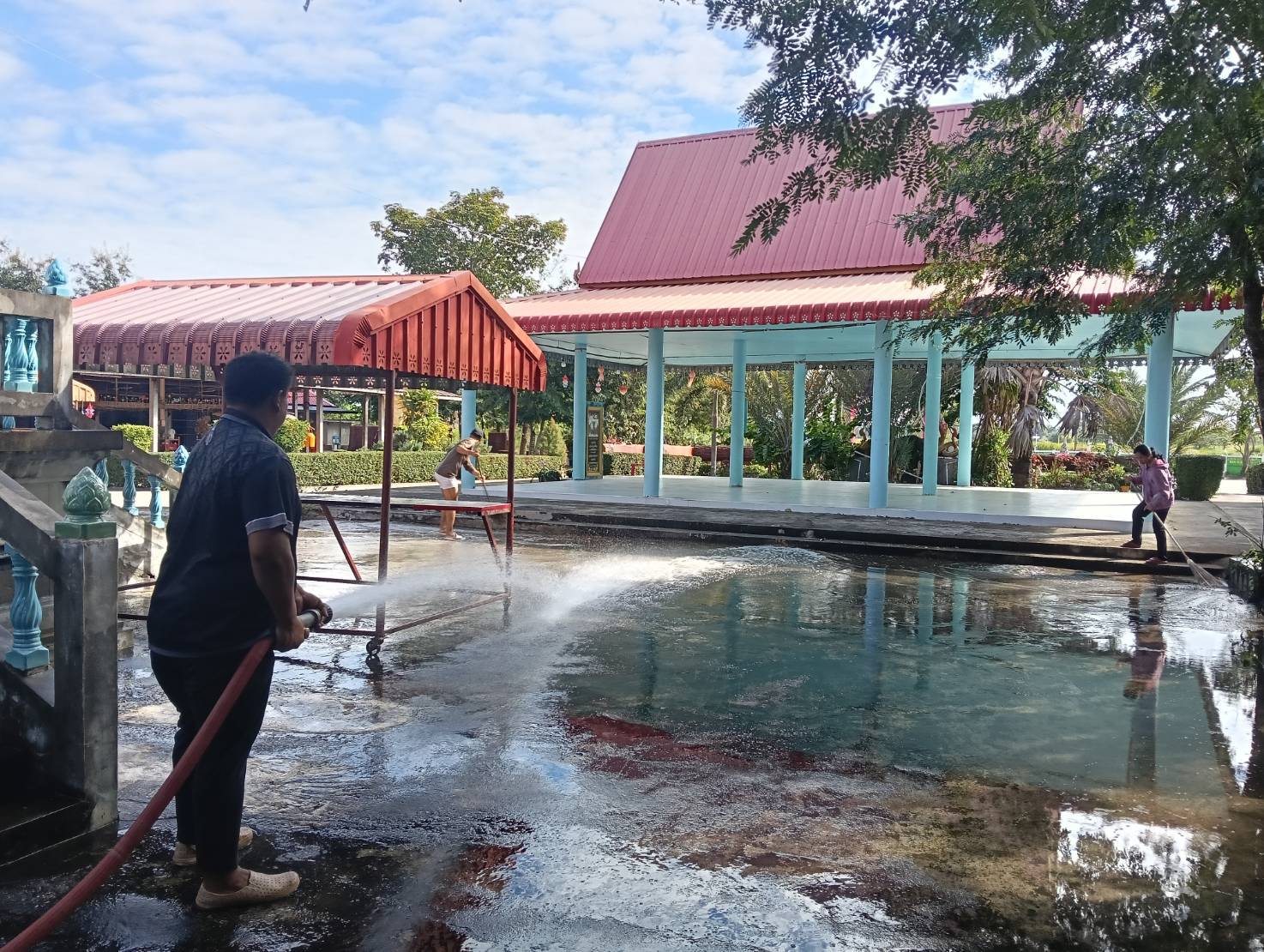 นำรถบรรทุกน้ำฯ อบต.หัวทะเลออกเพื่อทำความสะอาดศาลาธรรมสังเวชและลานเอนกประสงค์วัดหัวสะพาน ม.10