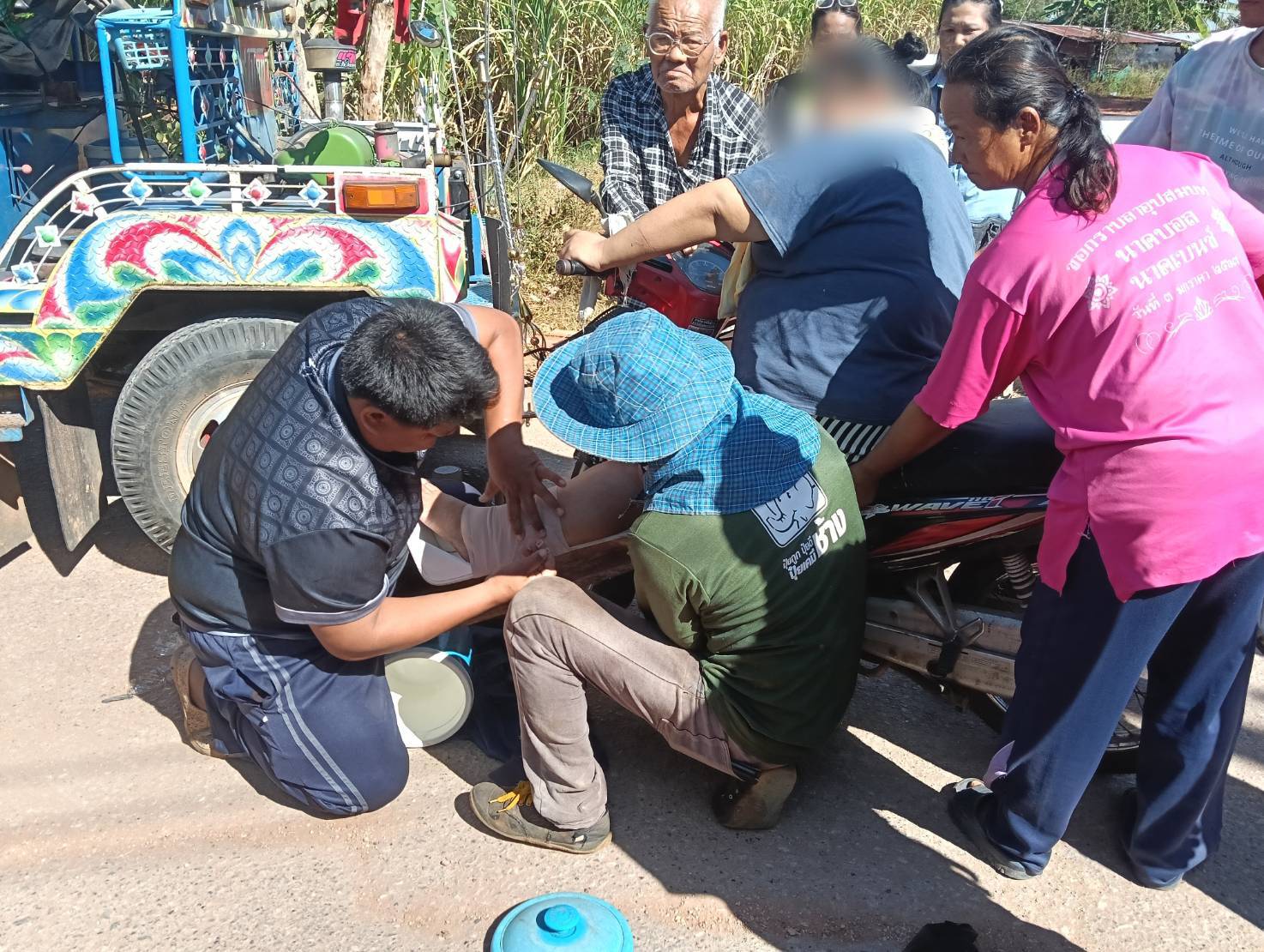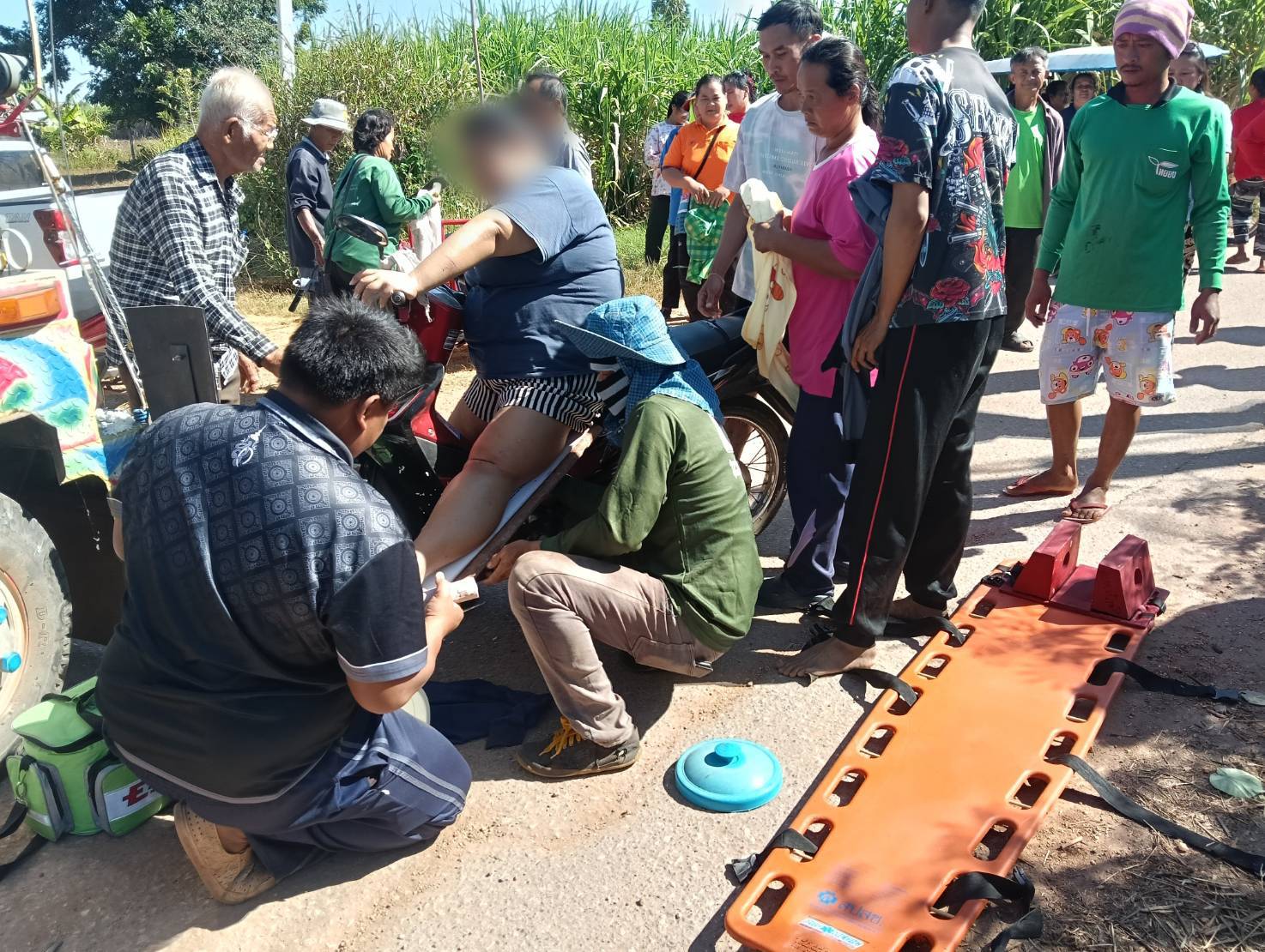 รับแจ้งมีอุบัติเหตุรถจักรยานยนต์ชนรถอีแต๋น บนถนนบ้านหนองดง ม.7-บ้านเก่า ม.8 บริเวณก่อนถึงหมู่บ้านหนองดง