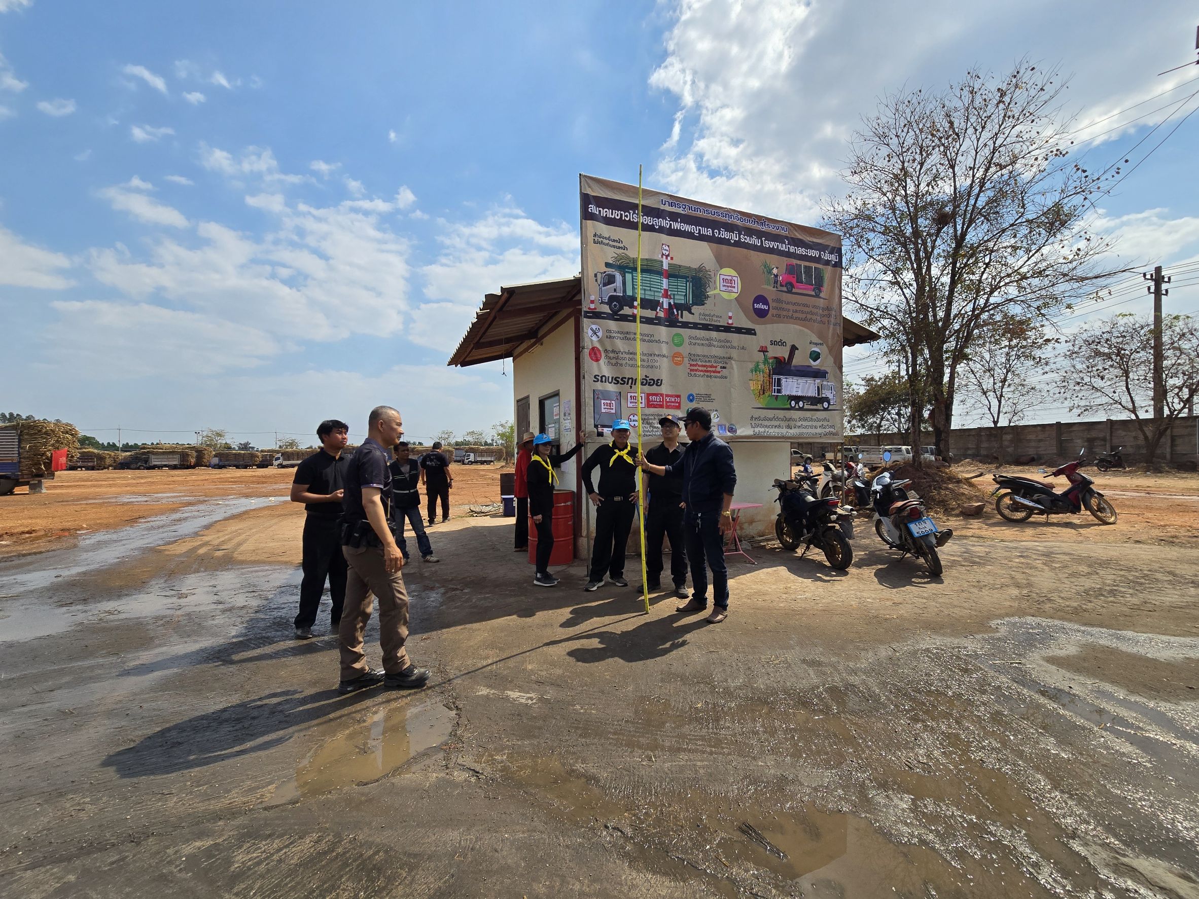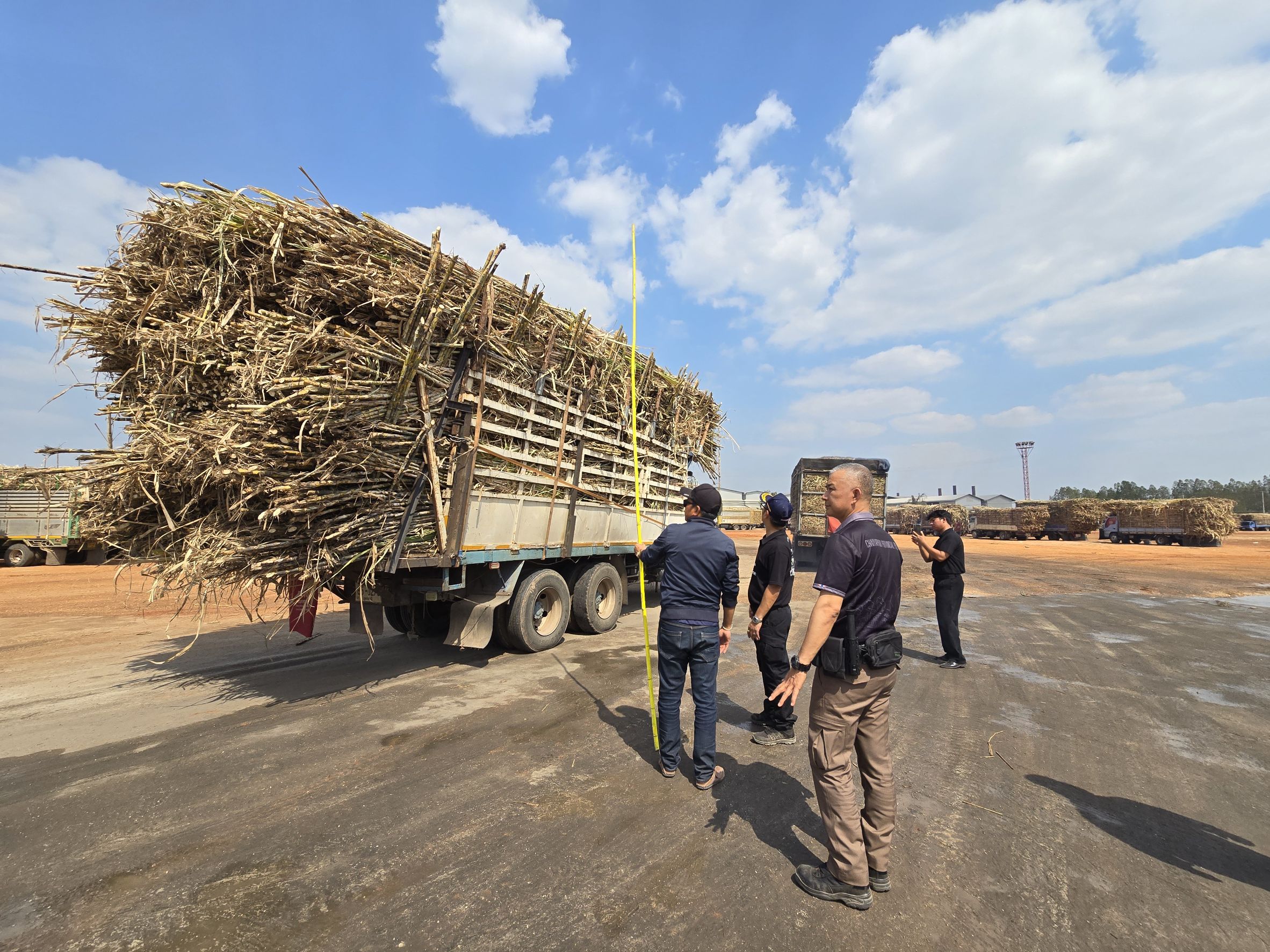 รับคำสั่งท่านผู้ว่า ลงพื้นที่โรงงานเพื่อตรวจสอบความเรียบร้อยและแนวทางการป้องกันของโรงงานเรื่องการบรรทุกอ้อยเข้าโรงงาน