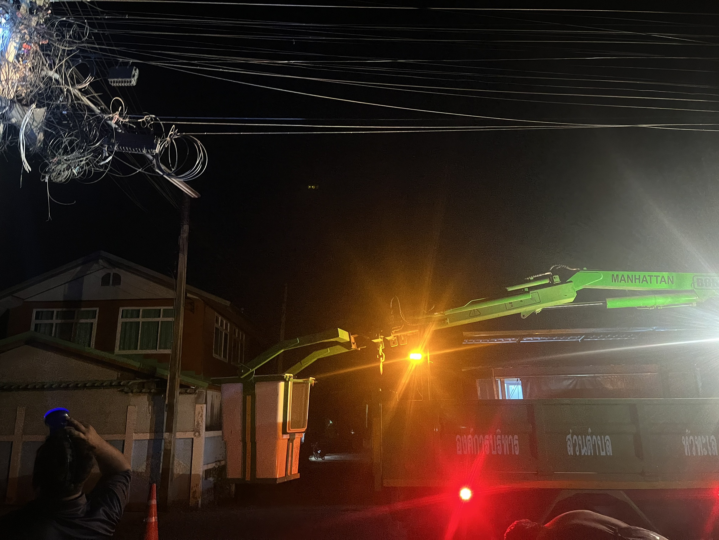 รับเเจ้งเหตุ สายไฟฟ้าส่องสว่างสาธารณะขาด สาเหตุเกิดจากรถขนอ้อย