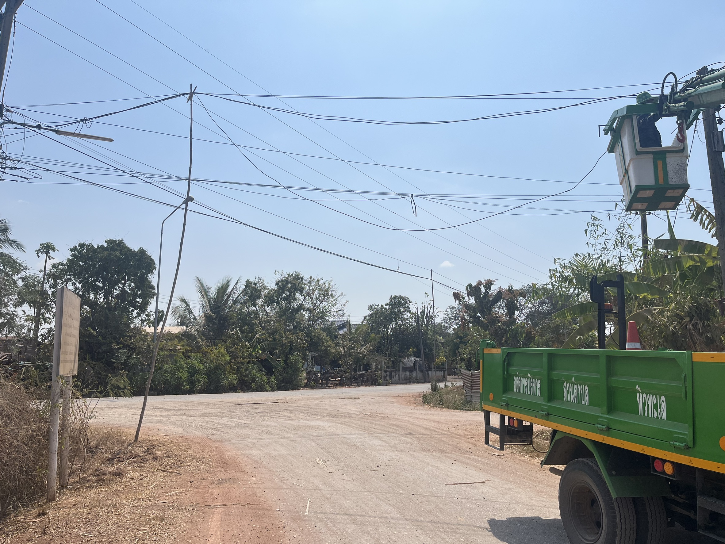 รับเเจ้งเหตุ สายไฟฟ้าส่องสว่างสาธารณะขาด สาเหตุเกิดจากรถขนอ้อย