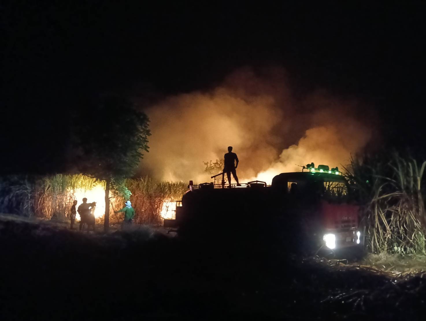 รับแจ้งเกิดเหตุไฟไหม้ป่าอ้อยบริเวณระหว่างเส้นทางรอยต่อบ้านหัวสระใหม่ หมู่ 12 ไปโคกแสว หมู่.6