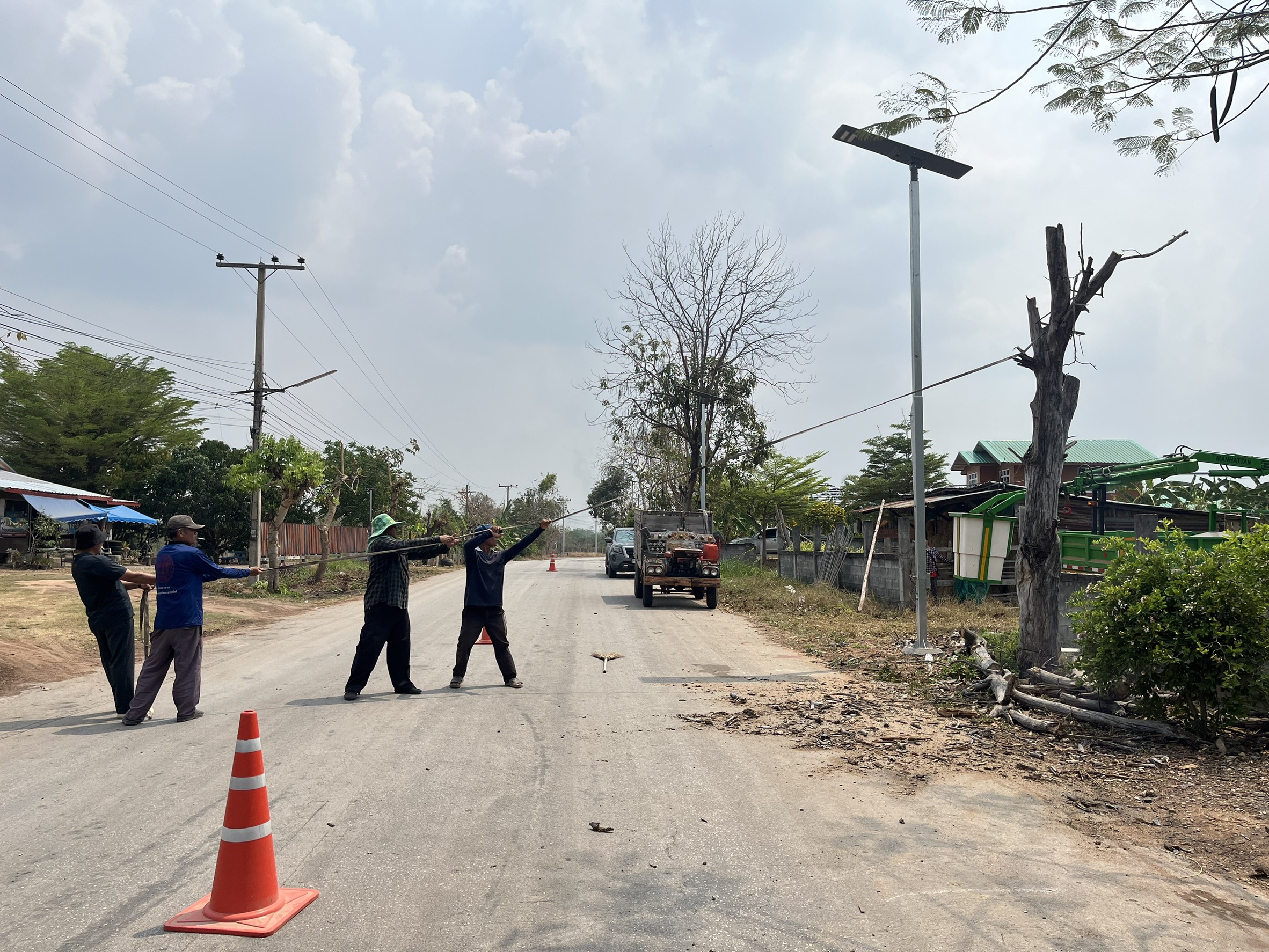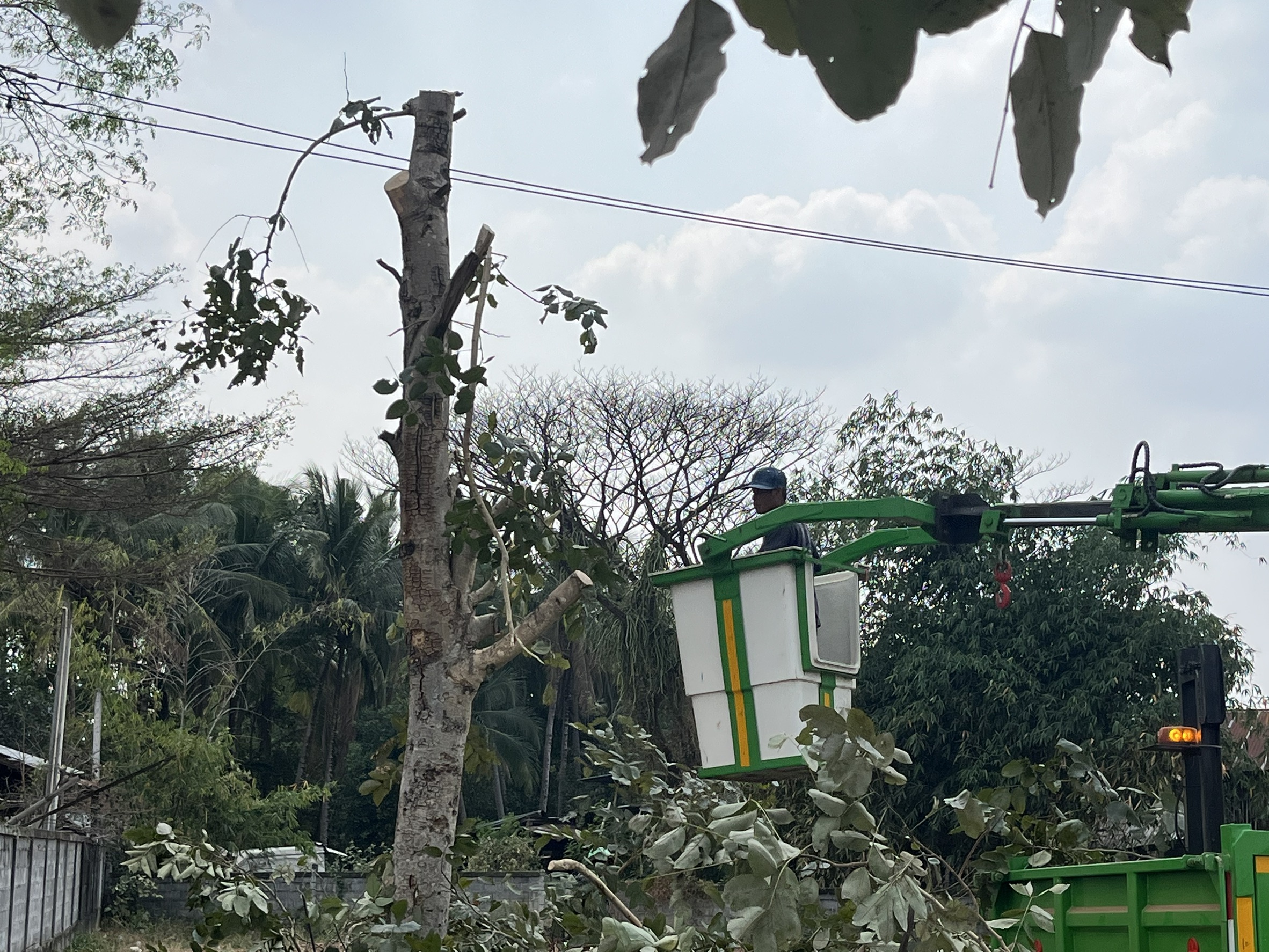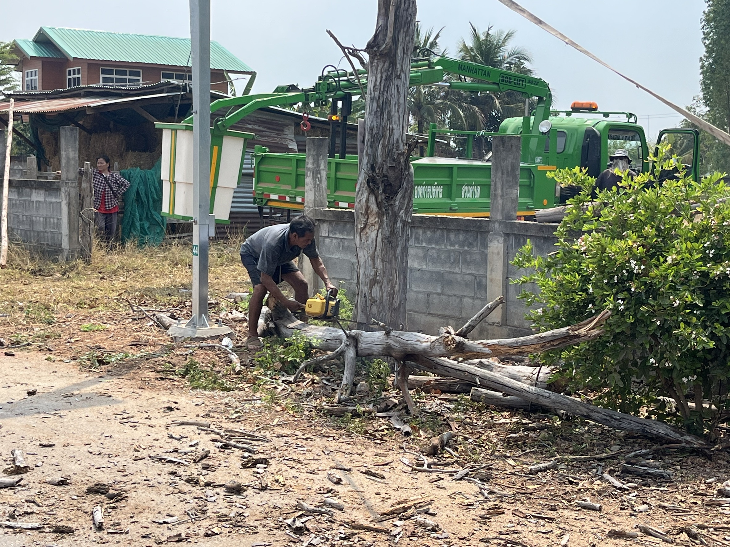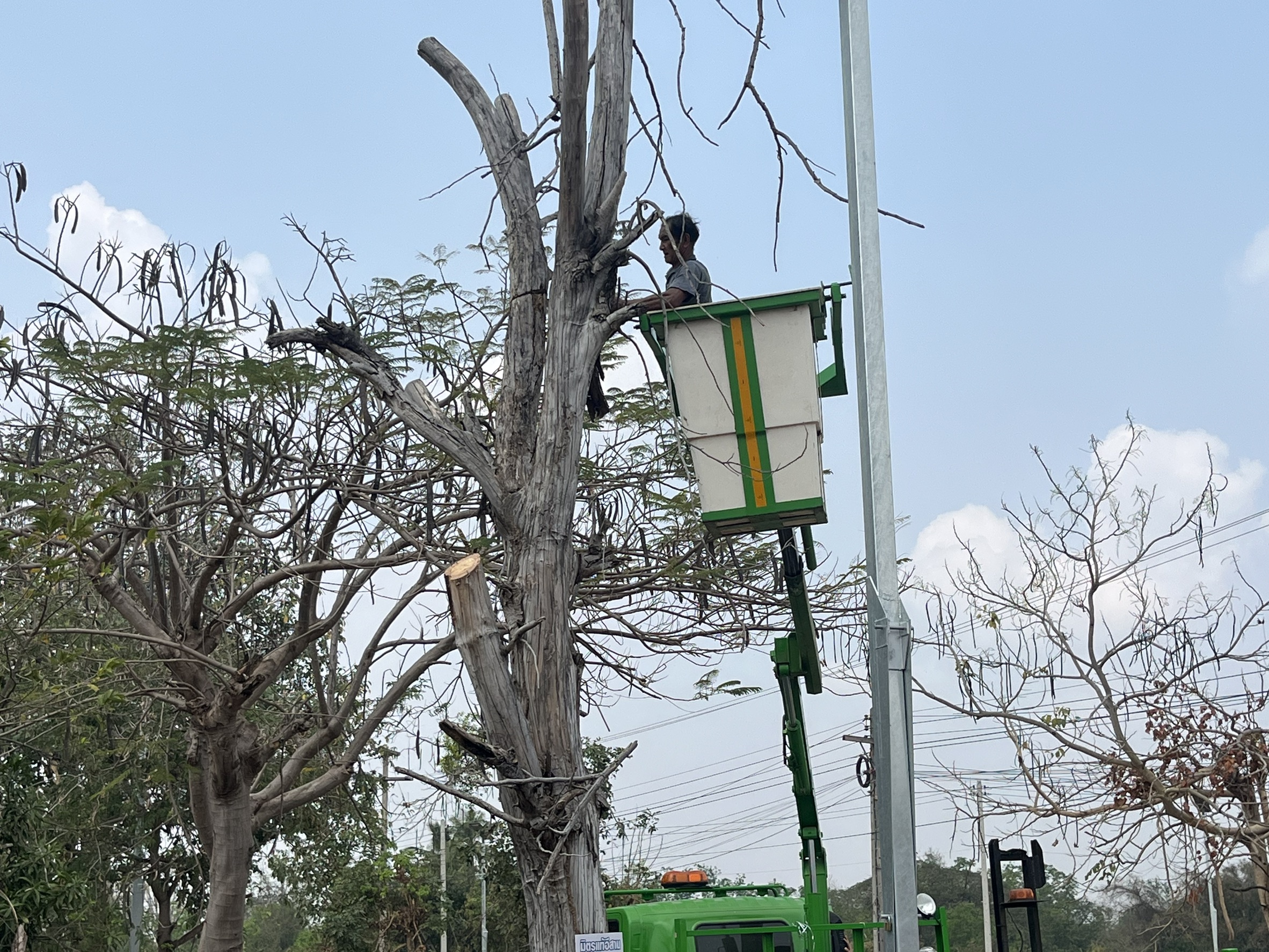 ออกตัดต้นไม้ เนื่องจากยืนต้นตาย หวั่นเกิดเหตุลมพัดแรงอาจทำให้ไม่ปลอดภัยต่อผู้ใช้ถนน