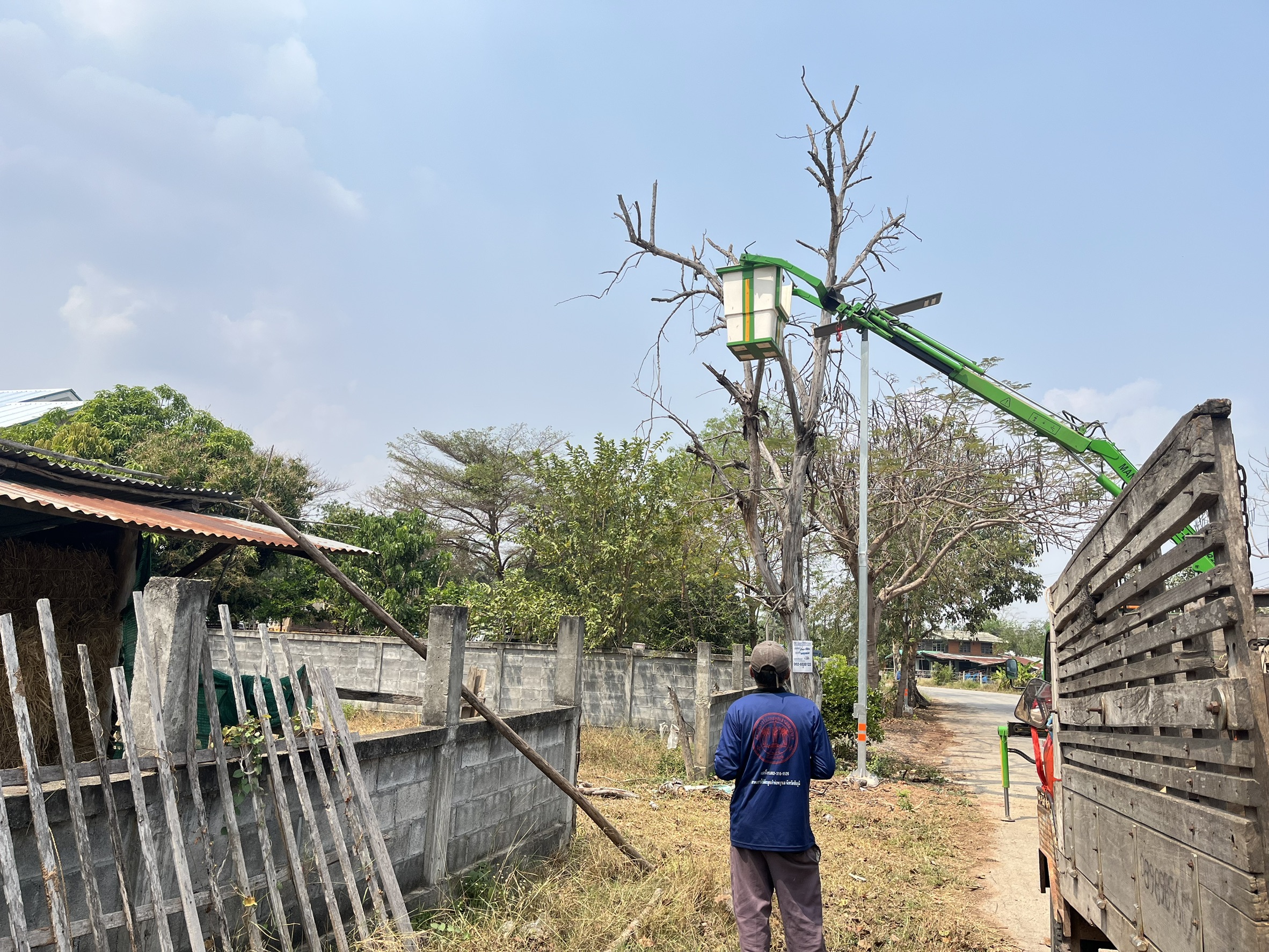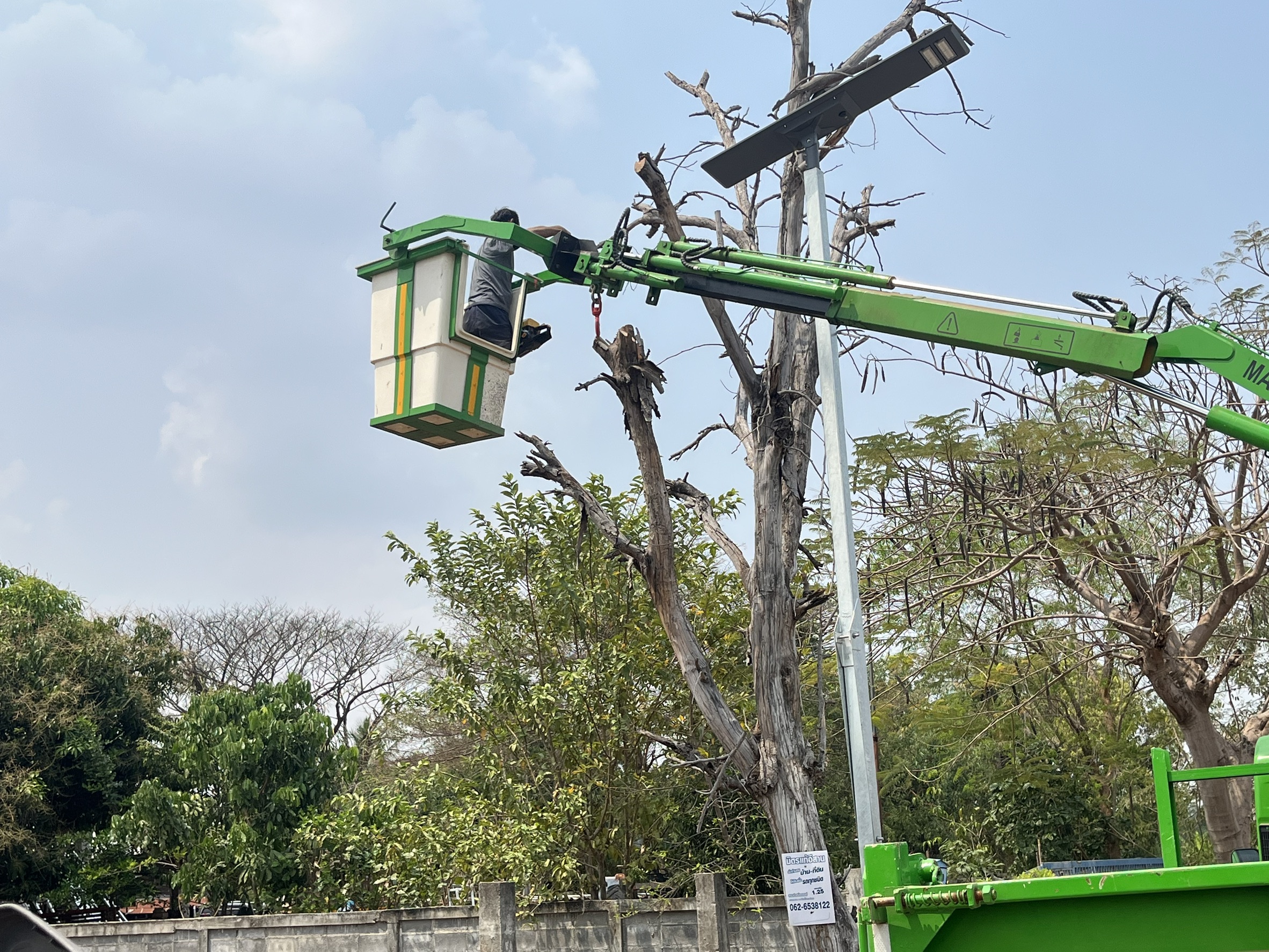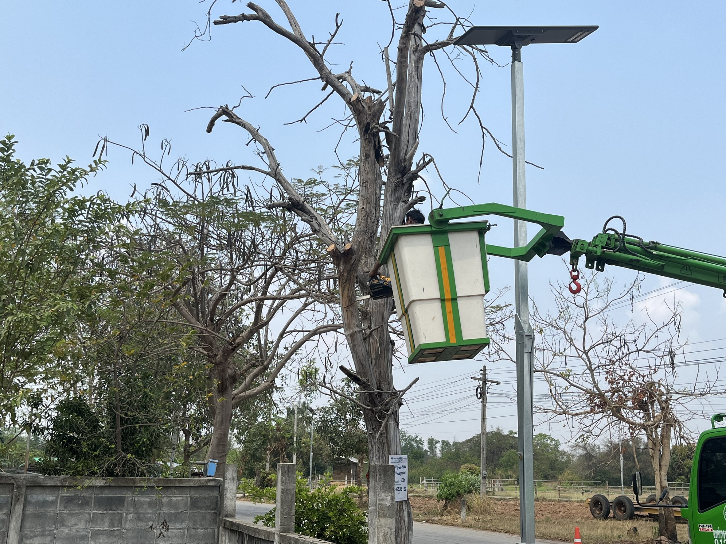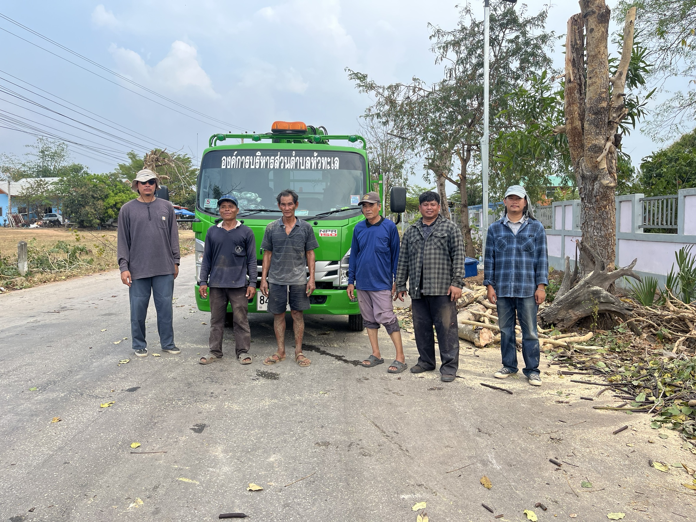 ออกตัดต้นไม้ เนื่องจากยืนต้นตาย หวั่นเกิดเหตุลมพัดแรงอาจทำให้ไม่ปลอดภัยต่อผู้ใช้ถนน