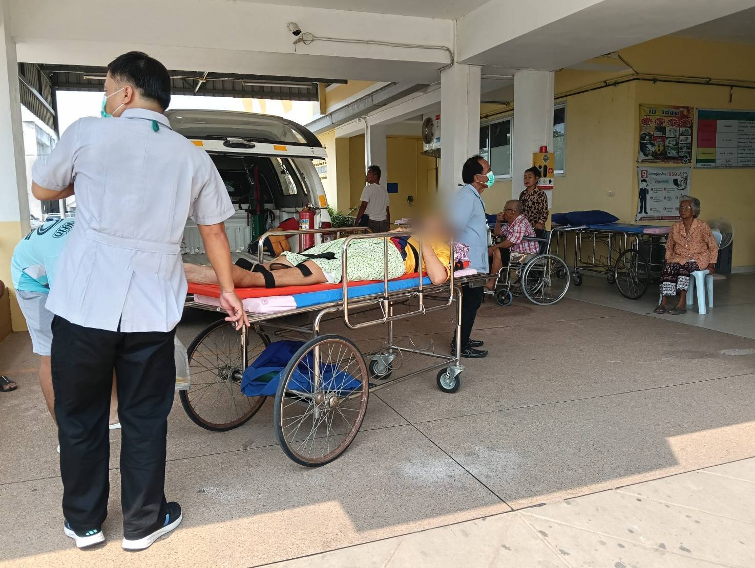 นำรถกู้ชีพ อบต.หัวทะเล ออกเพื่อรับ-ส่งผู้ป่วยติดเตียงช่วยเหลือตัวเองไม่ได้ หมอนัดเปลี่ยนสายทางเดินปัสสาวะที่โรงพยาบาลบำเหน็จณรงค์