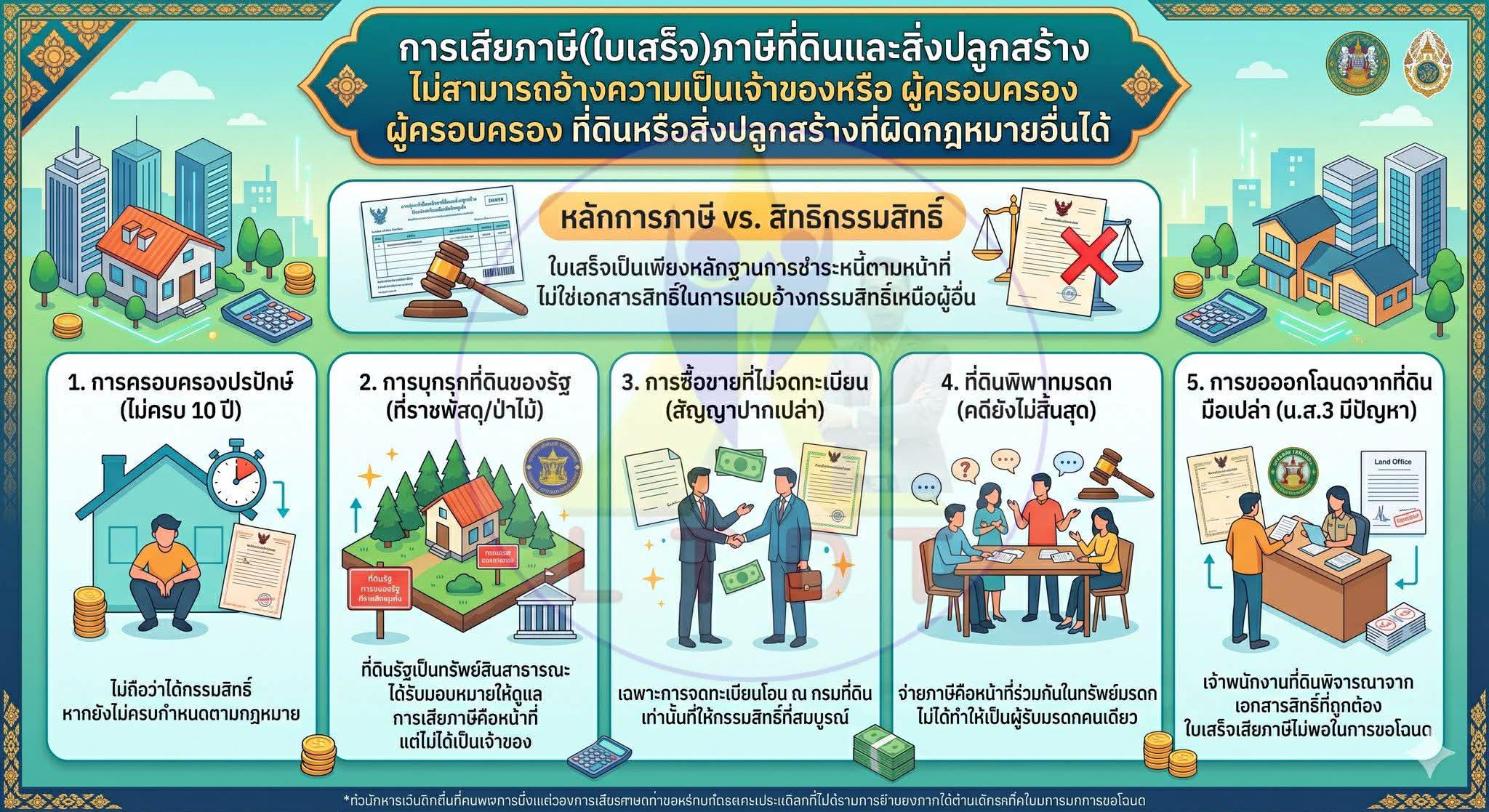 #ผู้มีหน้าที่เสียภาษีที่ดินและสิ่งปลูกสร้าง_ตอนที่3 ใช้ใบเสร็จภาษีอ้างความเป็นเจ้าของหรือครอบครองไม่ได้