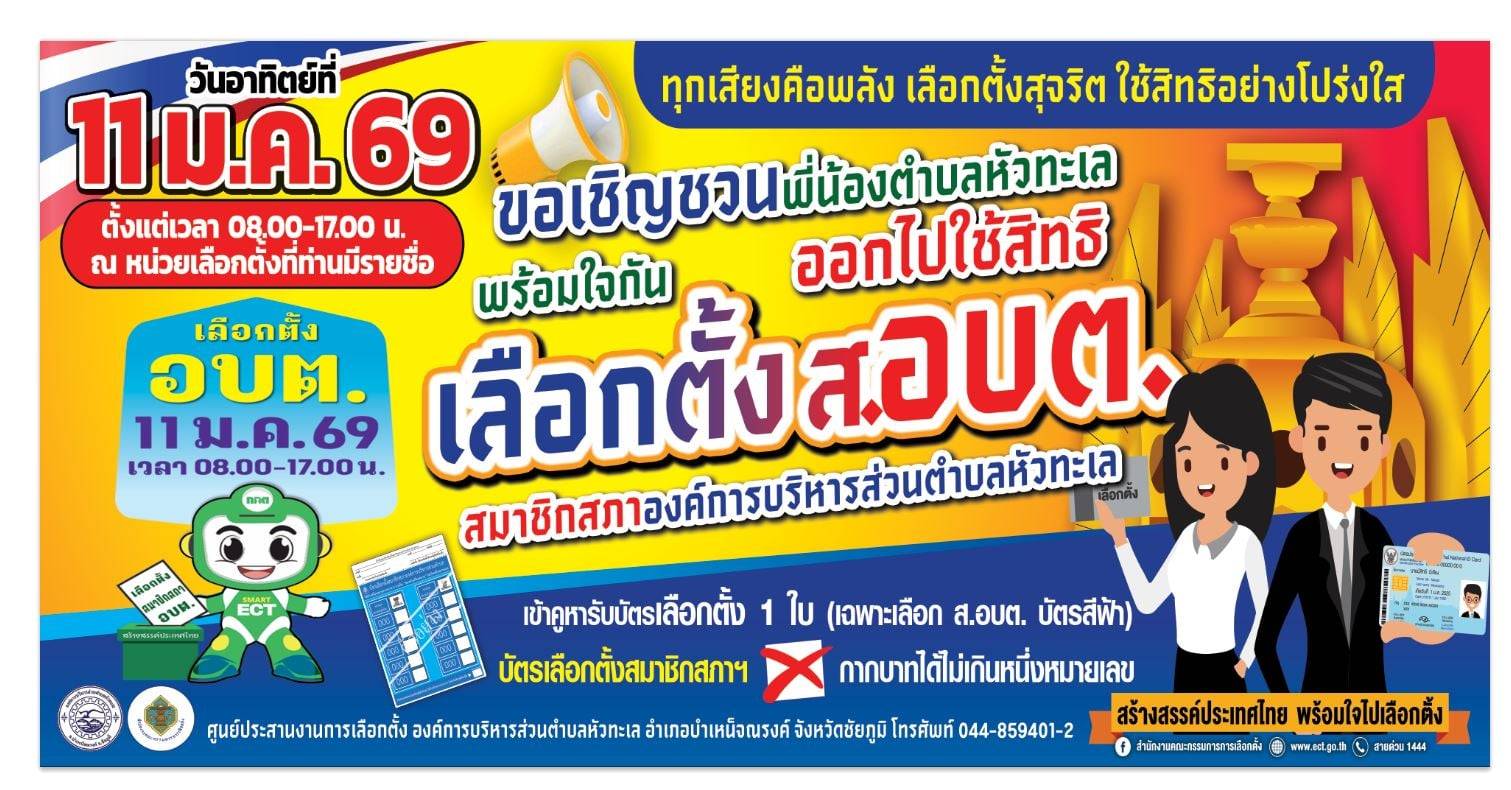 ขอเชิญชวนพี่น้องชาวตำบลหัวทะเล พร้อมใจกัน ออกไปใช้สิทธิเลือกตั้งสมาชิกสภาองค์การบริหารส่วนตำบลหัวทะเล