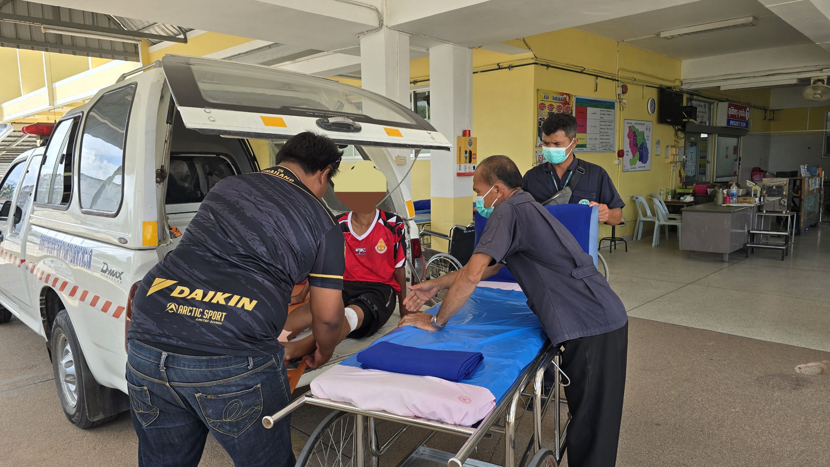 นำส่งตัวนักกีฬาบาดเจ็บ จากการแข่งขันฟุตบอลชาย 7 คน