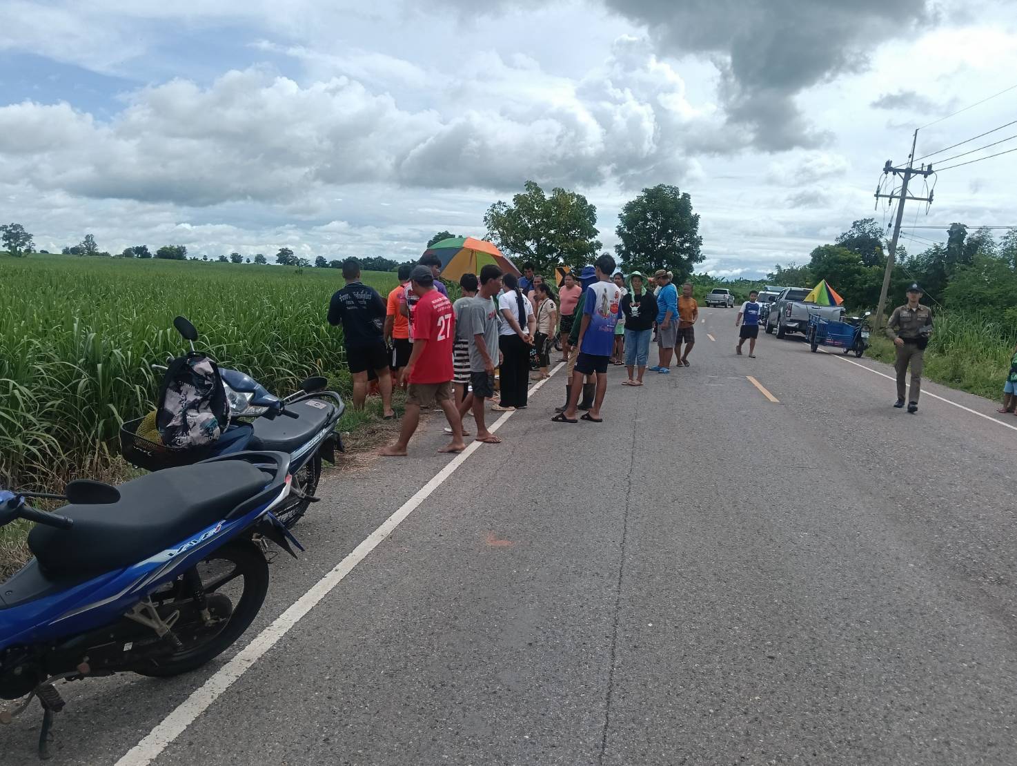 รับแจ้งมีอุบัติเหตุรถมอเตอร์ไซค์เฉี่ยวชนกันเองบริเวณถนนทางเข้าหมู่บ้านหนองดง