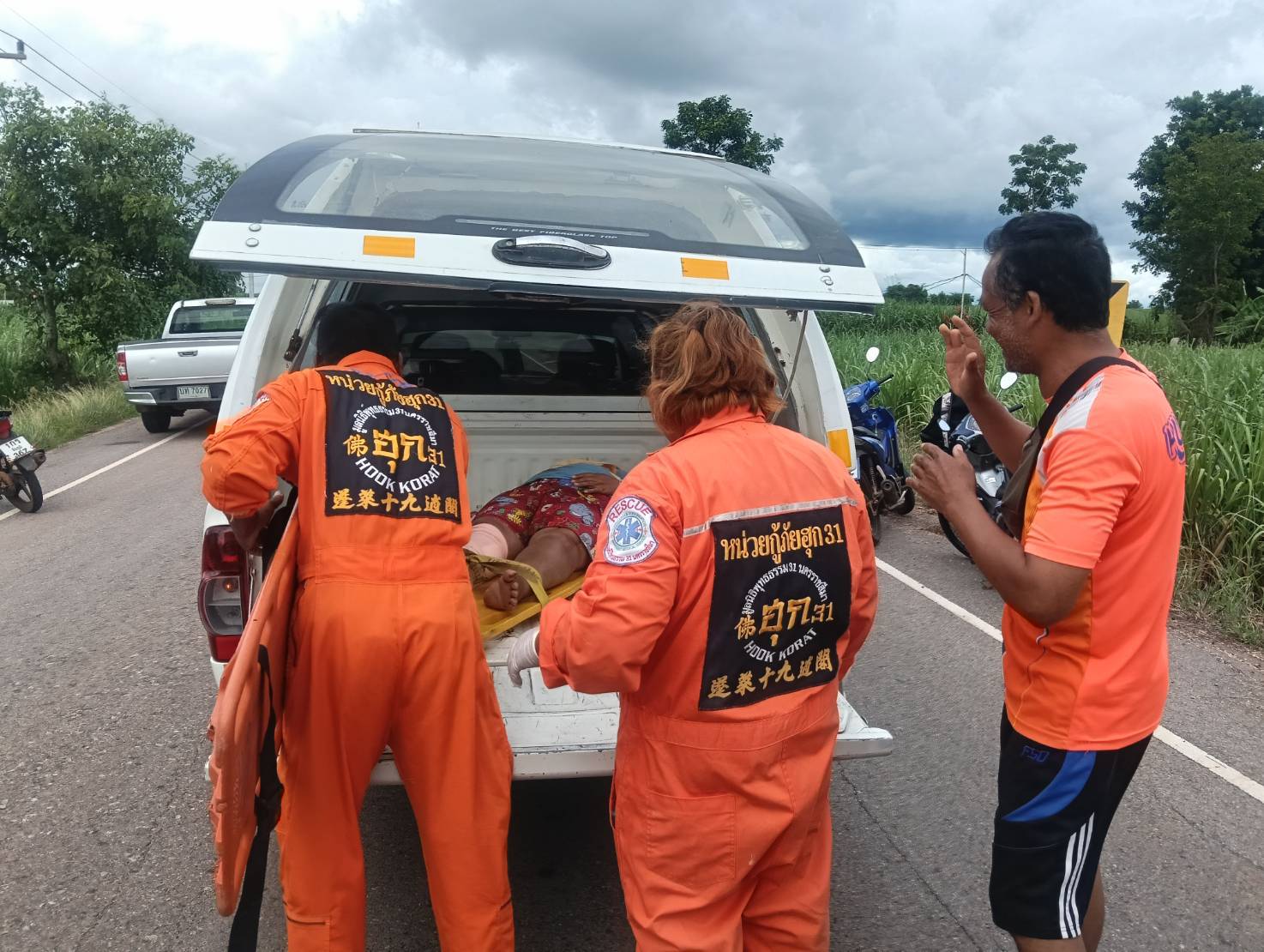 นำรถกู้ชีพ อบต.หัวทะเล ออกรับผู้ได้รับบาดเจ็บ ตรวจสอบเหตุพบผู้บาดเจ็บเป็นหญิง1 ราย ทำการปฐมพยาบาลเบื้องต้นก่อนเปลี่ยนถ่ายรถกู้ชีพ ฮุก 31 นำส่ง รพ.บำเหน็จณรงค์ ต่อไป