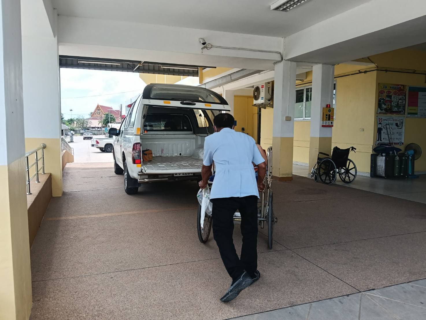 นำรถกู้ชีพ อบต.หัวทะเล ออกเพื่อไปรับ-ส่งผู้ป่วยติดเตียงช่วยเหลือตัวเองไม่ได้ หมอนัดทำกายภาพบำบัดที่โรงพยาบาลบำเหน็จณรงค์