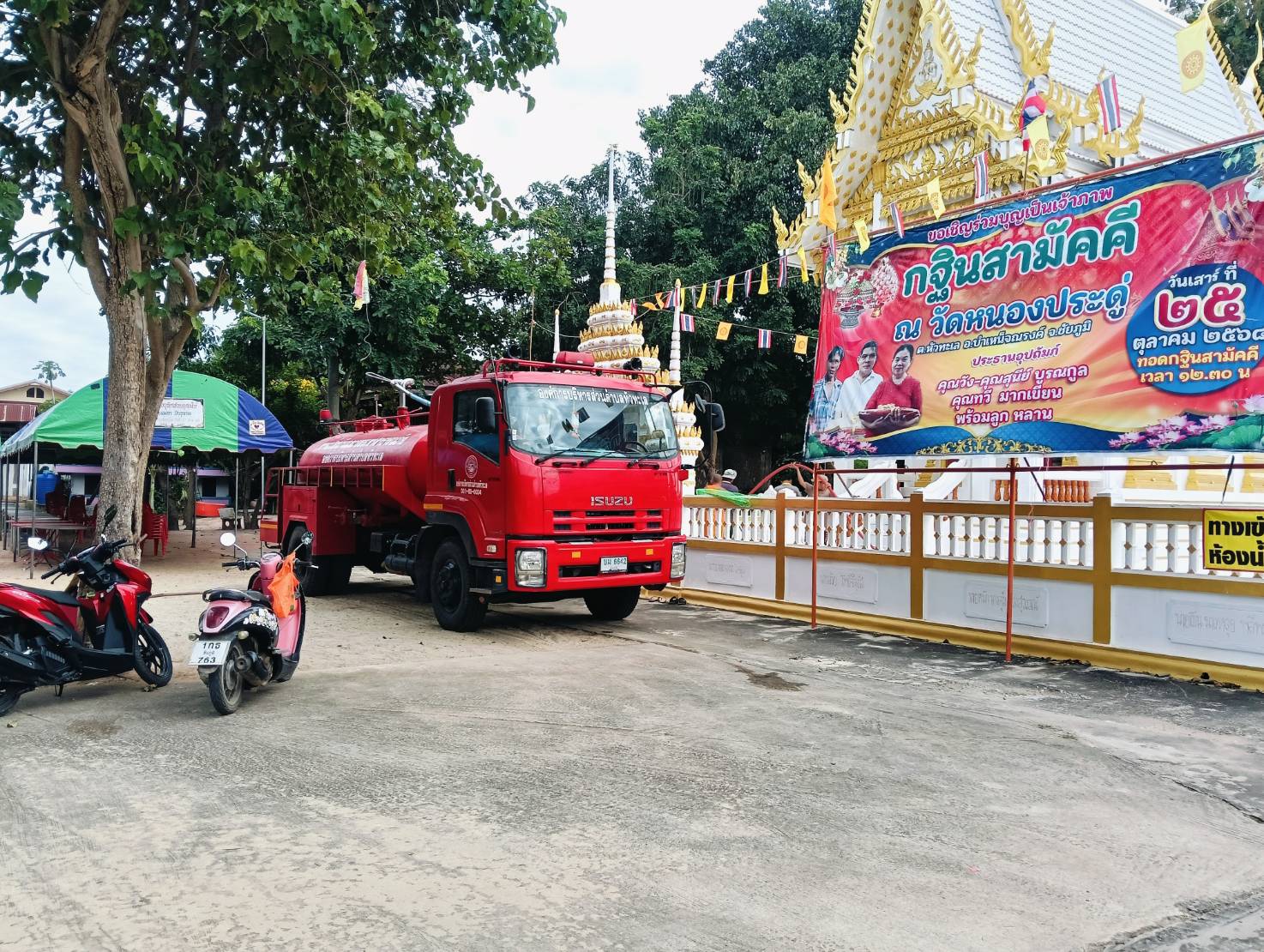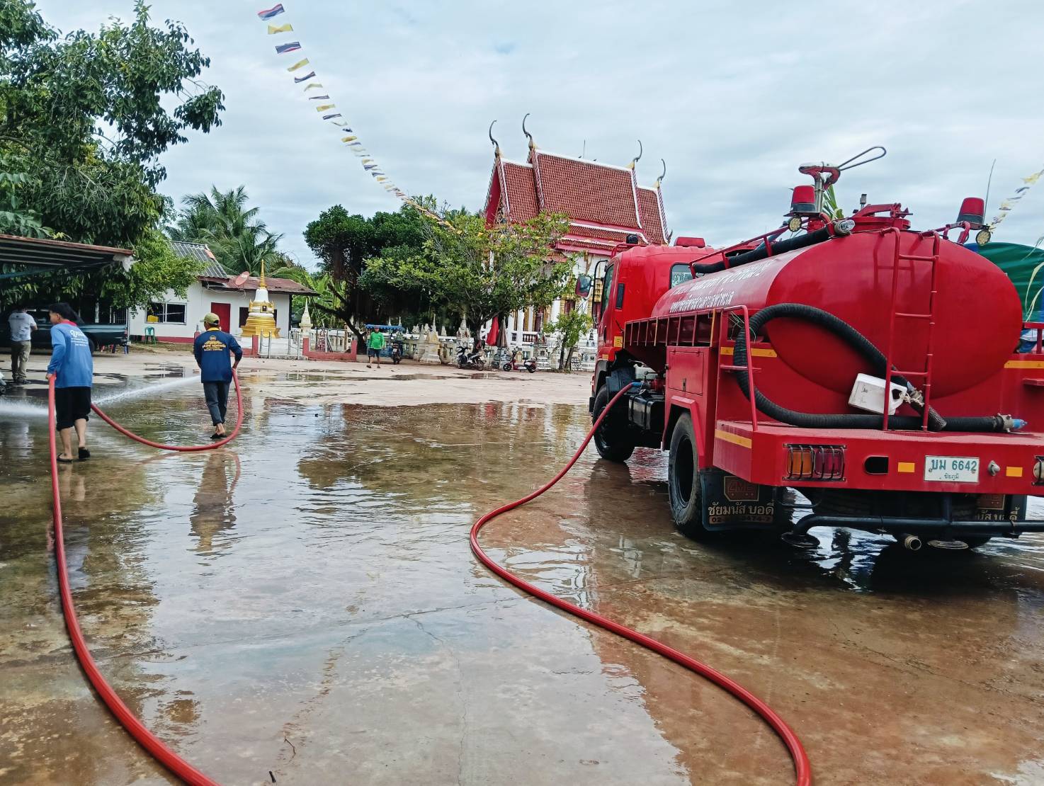 นำรถบรรทุกน้ำฯ อบต.หัวทะเล ออกเพื่อทำความสะอาดโบถส์วัดหนองประดู่ และลานเอนกประสงค์วัดสุนทรสราวาส(บ้านหัวสระ)เพื่อเตรียมสถานที่จัดงานบุญกฐินประจำปี 2568
