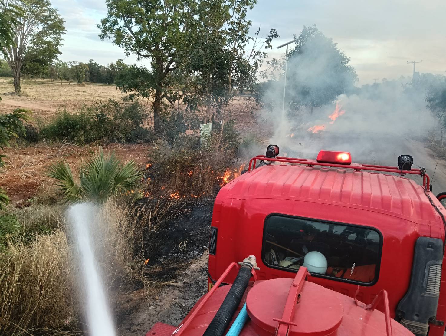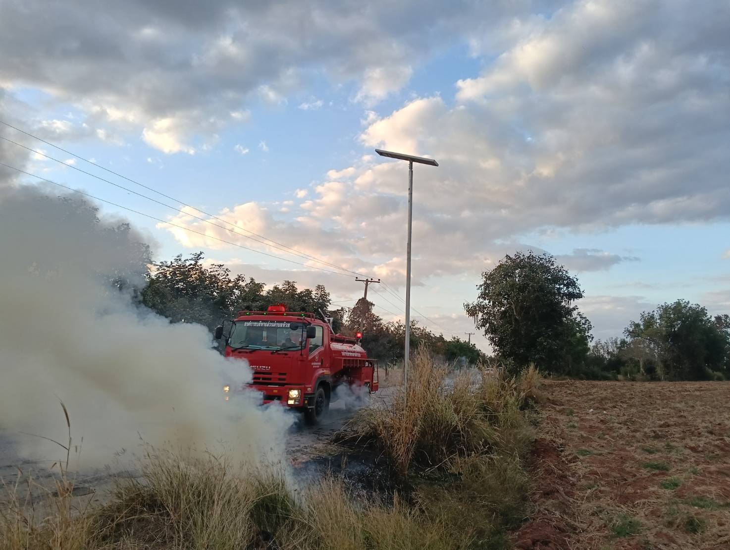 นำรถบรรทุกน้ำฯ อบต.หัวทะเลออกเพื่อดับไฟ ใช้เวลาประมาณ 15 นาทีจึงสามารถควบคุมไฟไว้ได้