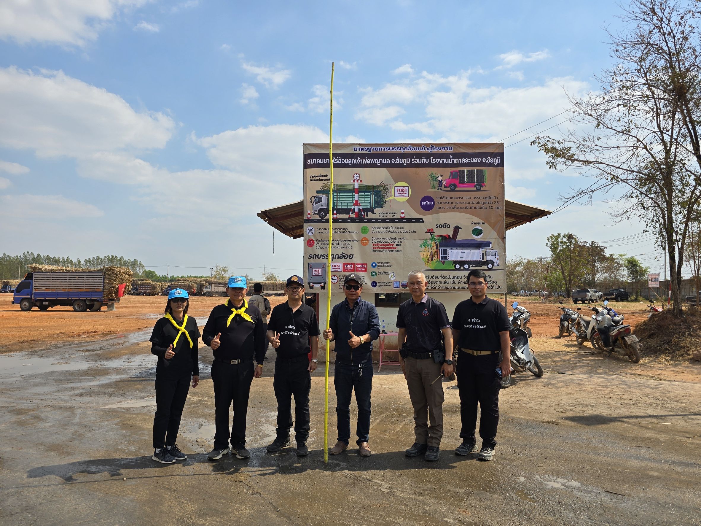 รับคำสั่งท่านผู้ว่า ลงพื้นที่โรงงานเพื่อตรวจสอบความเรียบร้อยและแนวทางการป้องกันของโรงงานเรื่องการบรรทุกอ้อยเข้าโรงงาน