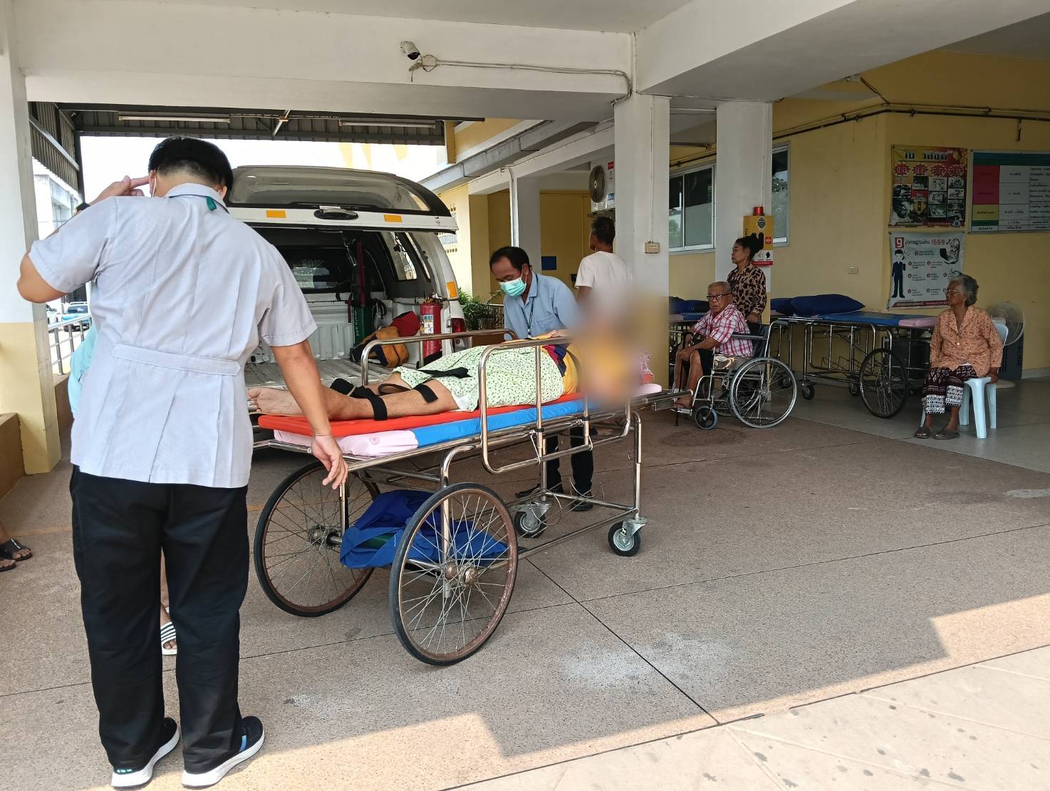 นำรถกู้ชีพ อบต.หัวทะเล ออกเพื่อรับ-ส่งผู้ป่วยติดเตียงช่วยเหลือตัวเองไม่ได้ หมอนัดเปลี่ยนสายทางเดินปัสสาวะที่โรงพยาบาลบำเหน็จณรงค์